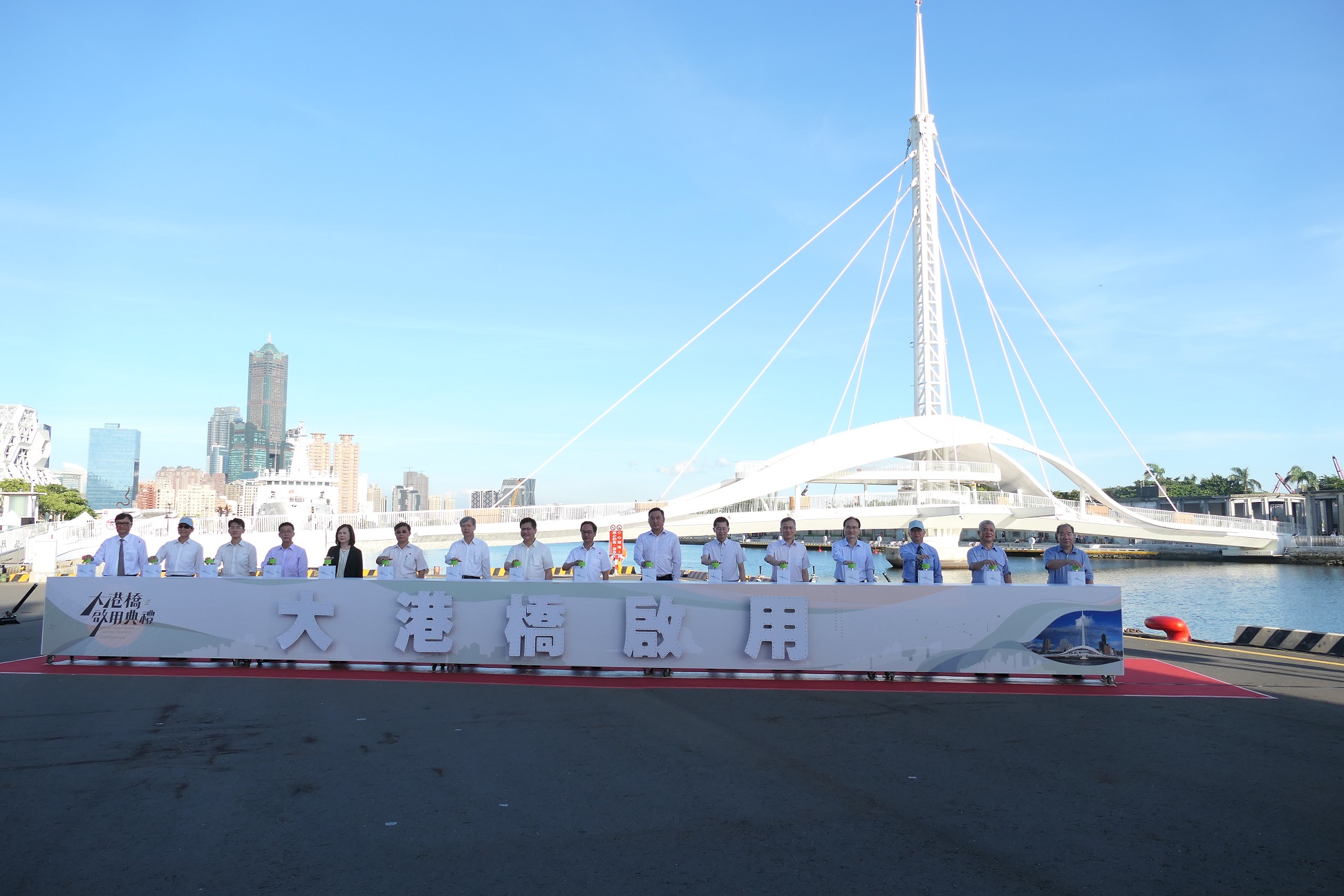 台灣港務公司董事長李賢義表示,高雄大港橋啟用之後,可望大幅提升亞洲新灣區的港埠觀光產業效益,同時也成為臨水岸觀景、觀光休憩及約會打卡的新亮點。