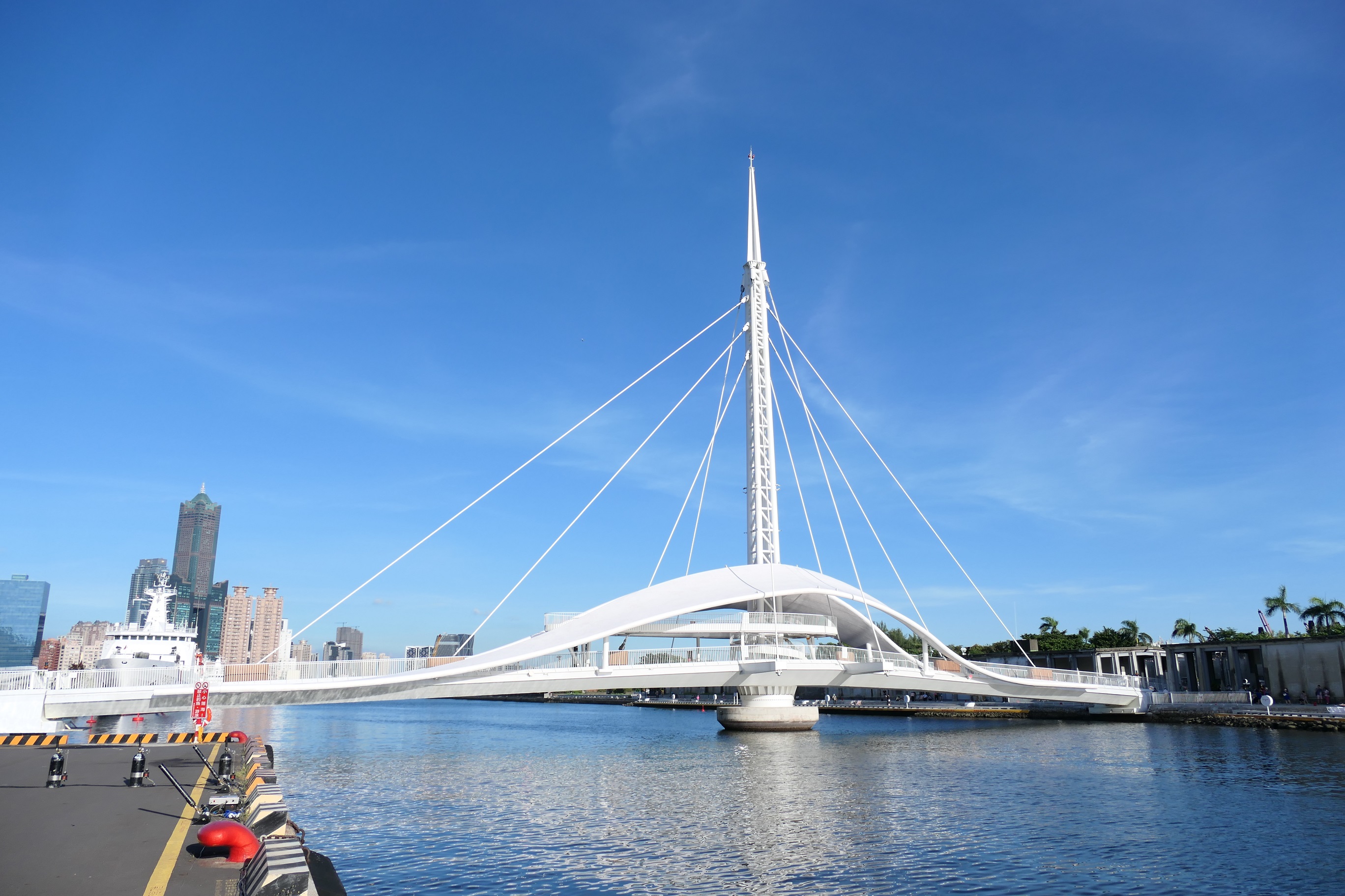 大港橋斥資約3.2億元,橋長110公尺、橋寬5公尺到11公尺不等,可供550人及自行車同時通行,每次開啟及閉合各約5分鐘完成,可提供民眾步行或自行車通行。