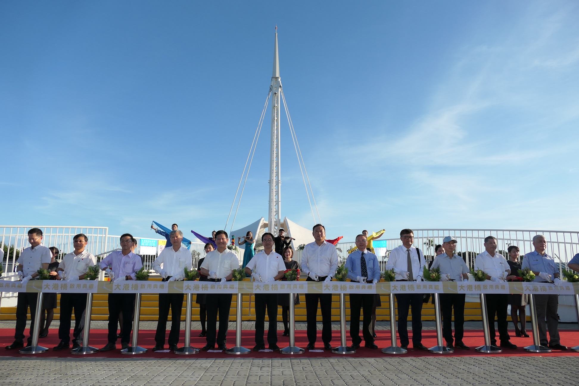 全國第一座水平旋轉的大港橋正式啟用,台灣港務公司今(6)日舉行大港橋啟用典禮,由港務公司董事長李賢義主持,交通部長林佳龍、行政院南部聯合服務中心執行長陳政聞、高雄市政府副秘書長王啟川、立法委員李昆澤、立法委員許智傑、交通部航港局長郭添貴、以及多位航商業者共同參與,一起見證大港橋啟用歷史性的一刻。