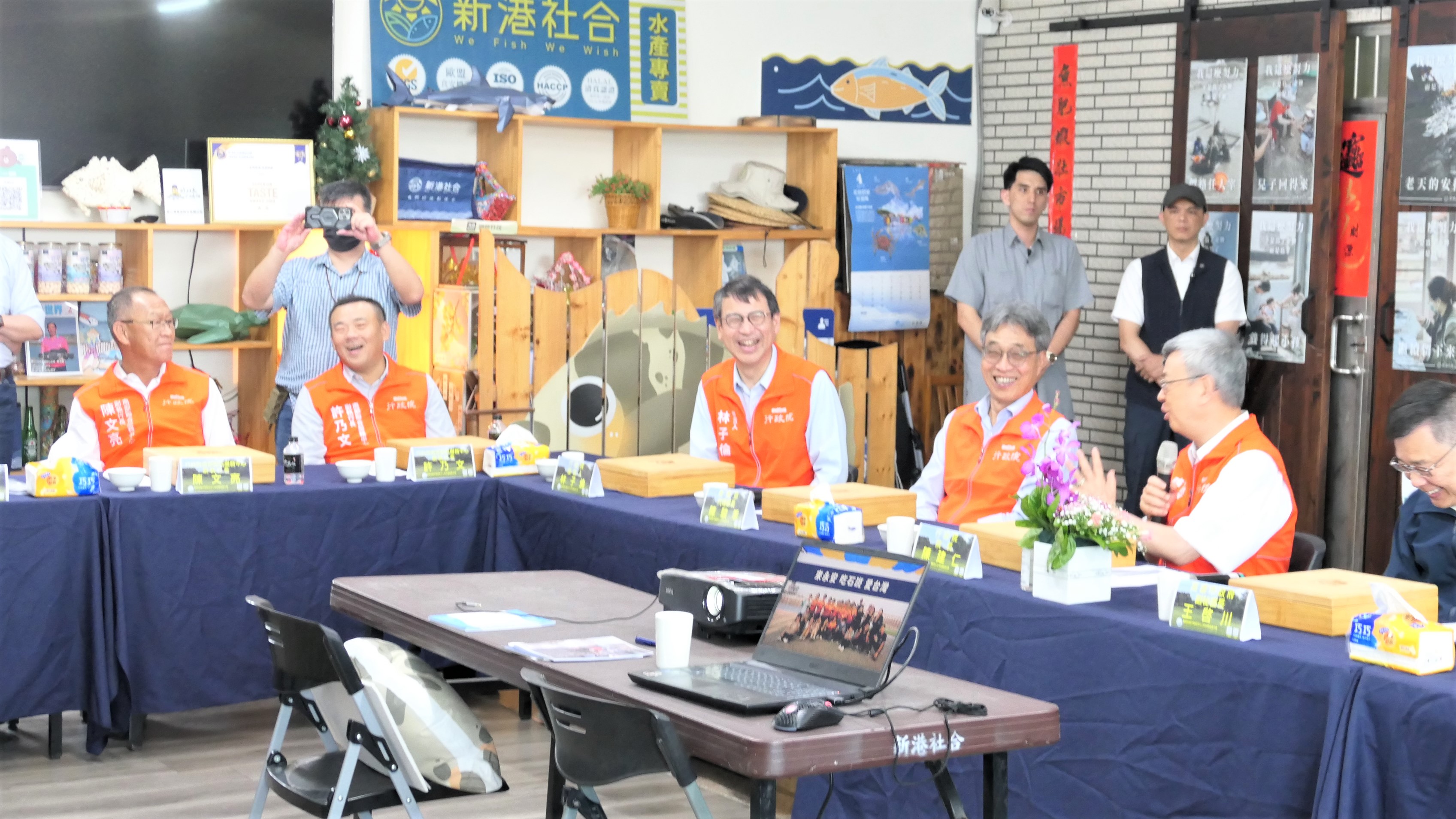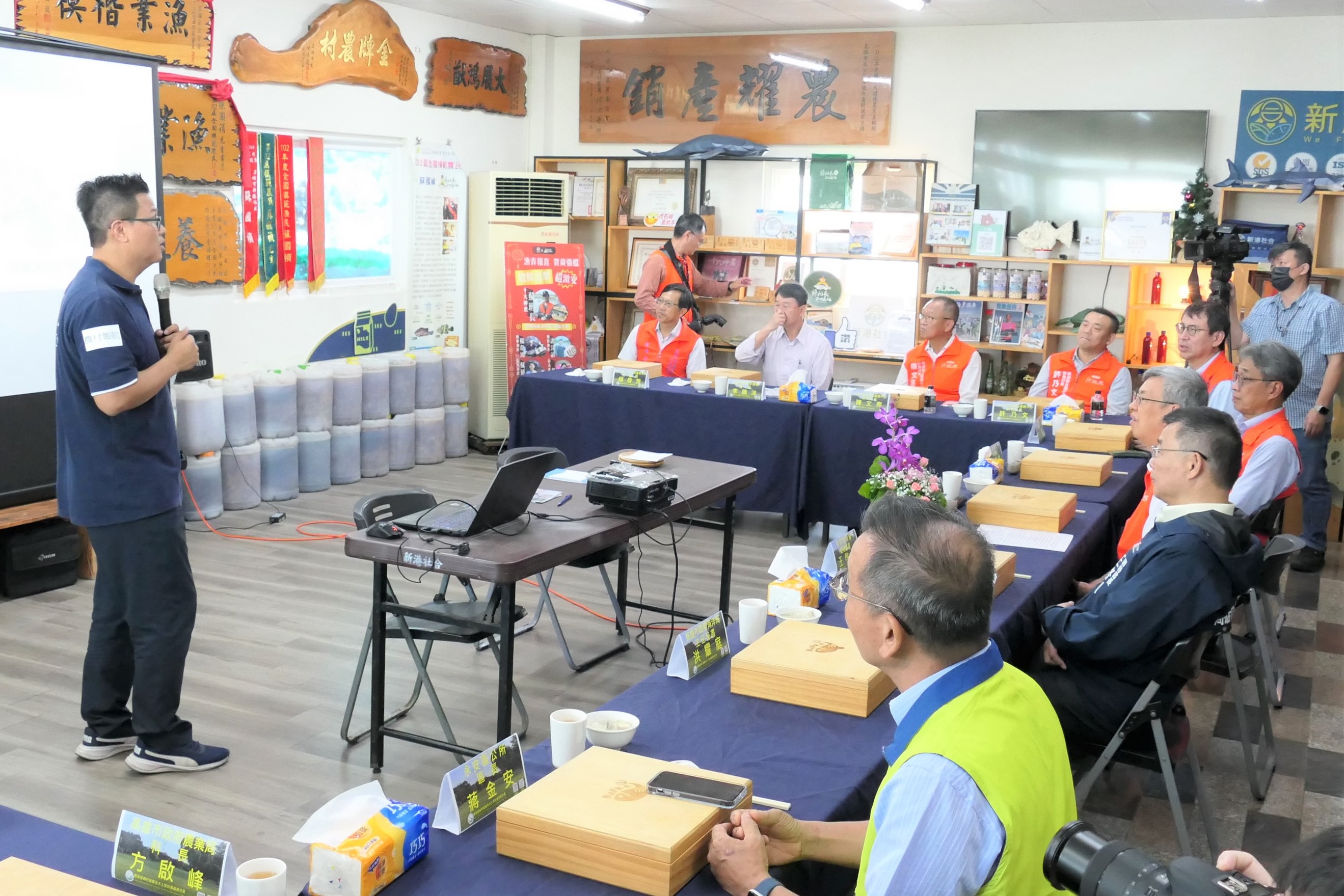 陳院長指出,高雄永安區新港社區於2021年榮獲「第二屆金牌農村競賽」金牌殊榮後,仍持續不斷努力創新,尤其在養殖龍膽石斑魚時,該社區沒有使用化學藥劑或抽取地下水,而是透過蔬果酵素來改善魚塭水質,同時也利用LNG接收站冷排水(鑽石水)進行養殖。