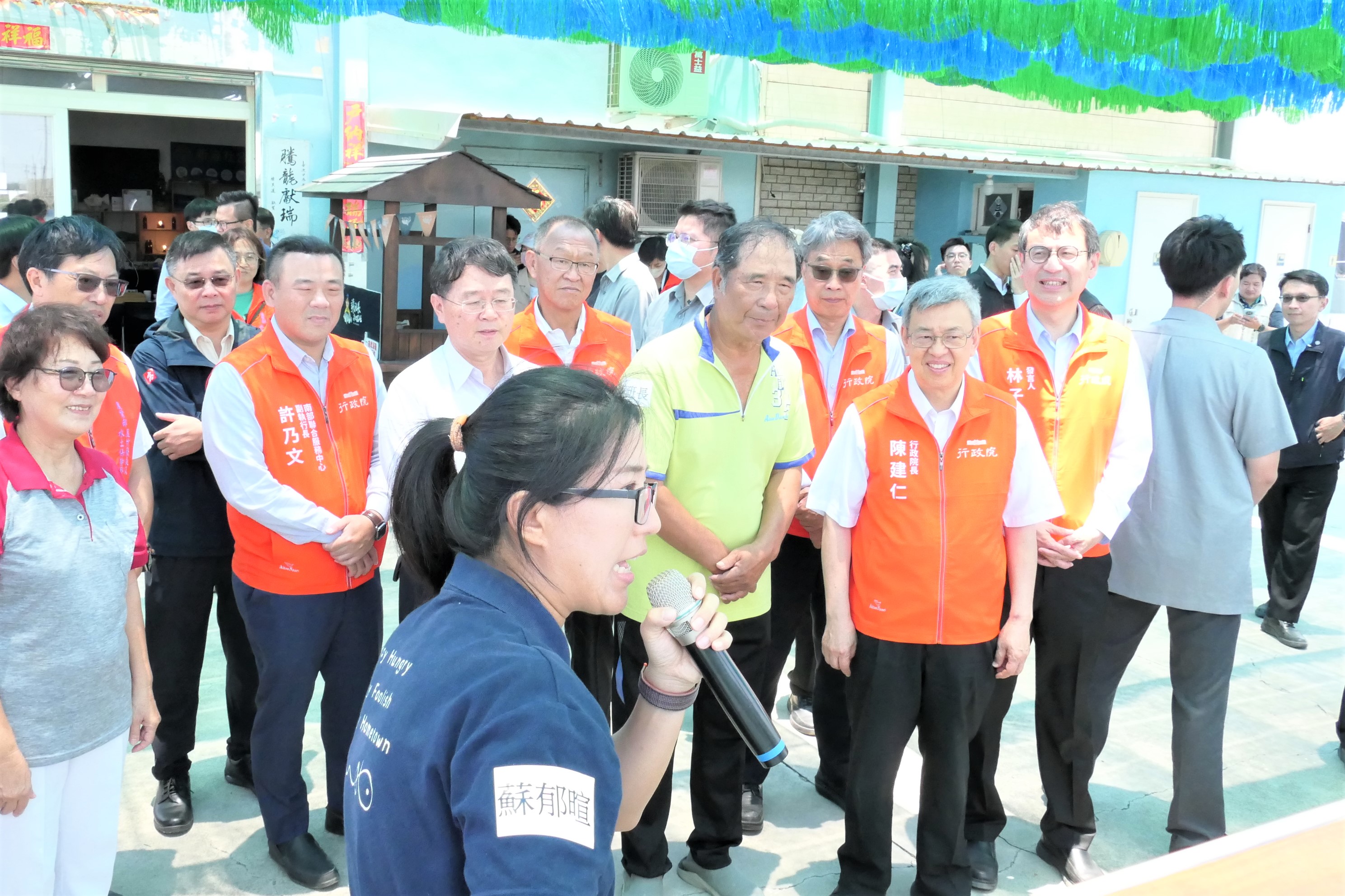 行政院長陳建仁今(10)日前往高雄市永安區視察2021年榮獲「金牌農村社區」殊榮的新港社區時表示,該社區在獲獎後仍持續不斷創新、擴大服務範圍,並重視維護生態永續發展,未使用化學藥劑或抽取地下水來養殖龍膽石斑魚,為臺灣農村再生發展樹立非常優良的典範。