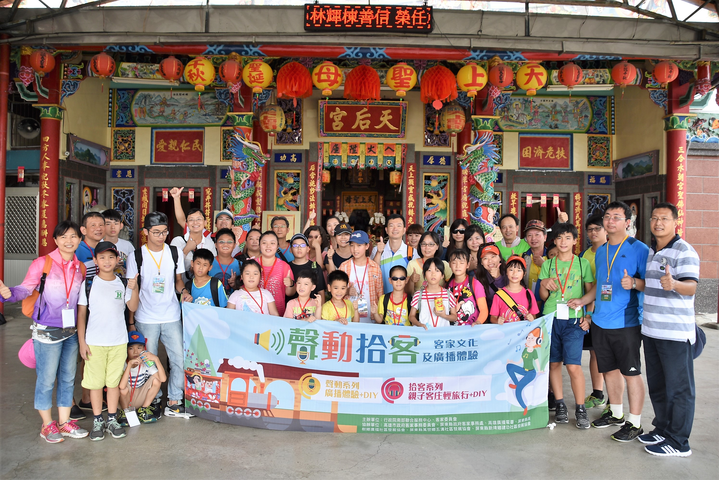 【高屏/報導】為引領民眾接觸客家語言與文化,以及引發民眾對客家文化探索的興趣,行政院南部聯合服務中心與客家委員會5日在右堆-美濃、高樹主辦「聲動拾客-客家文化及廣播體驗活動」,20組親子實地學習說客語、聆聽客家文史及建築、品嘗客家風味的特色菜、使用當地特產學製客家漬物等,處處洋溢歡笑聲,度過知性的一天「親子輕旅行」小時光,歡度難忘假期。