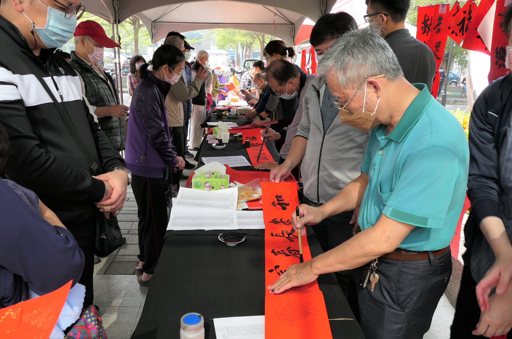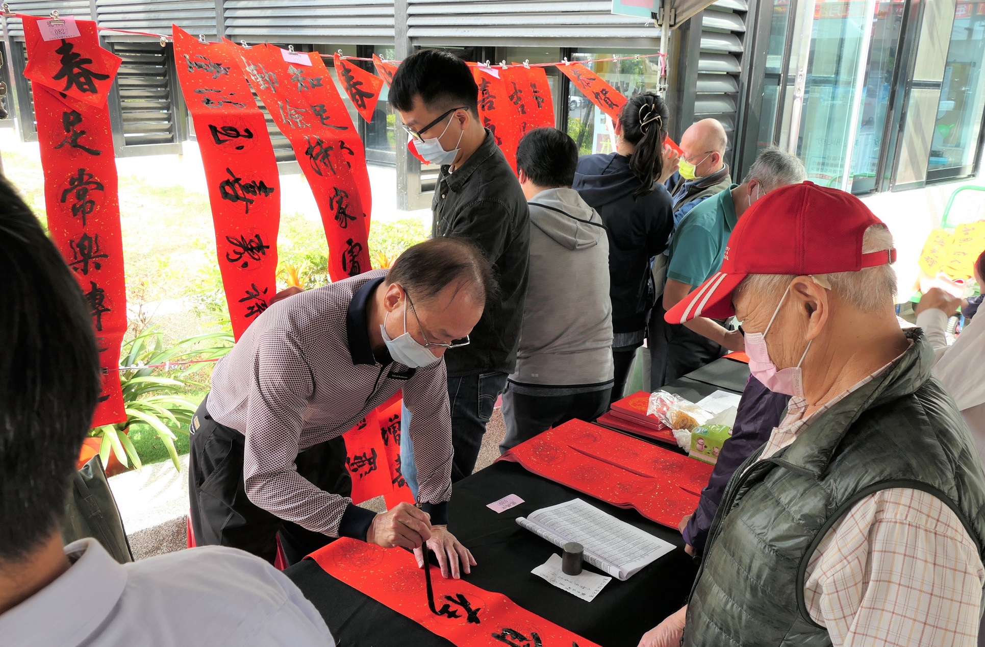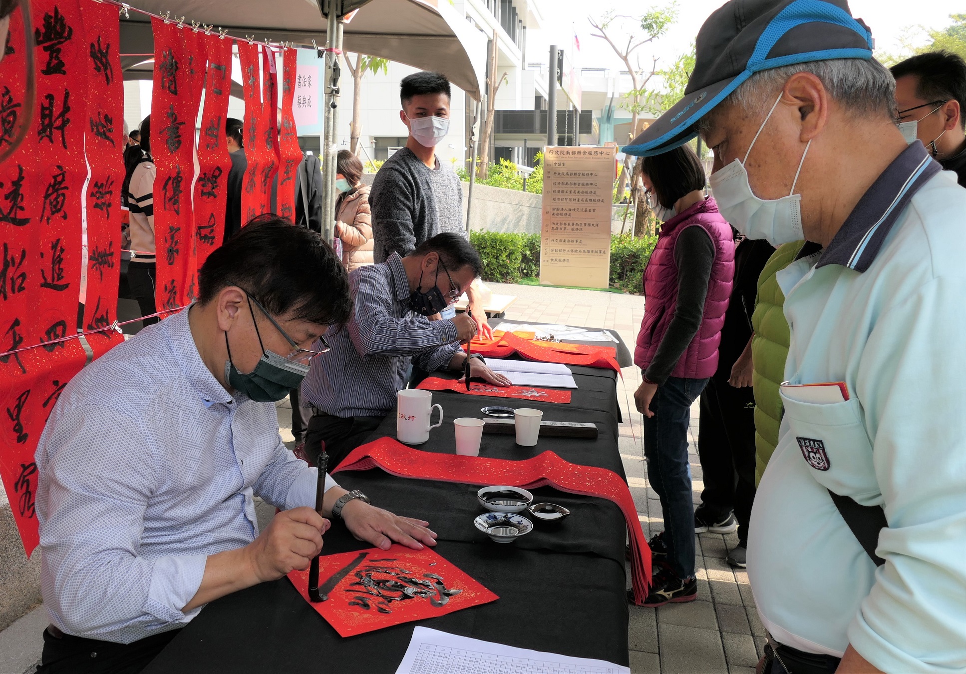 活動一連兩天邀請到蔡典成、蔡武勳、藍進士、楊壽雲等書法名家現場揮毫寫贈春聯,此次還邀請中心書法家夏萬春,以金色墨筆書寫「福虎生豐 風調雨順」大字,中心也首次邀請行政院秘書處曾錦春參議來到現場書寫,配合現場樂團演奏許多耳熟能詳歌曲,展現年節濃厚氣氛。