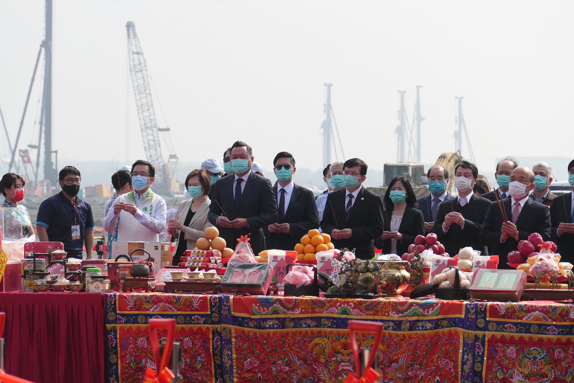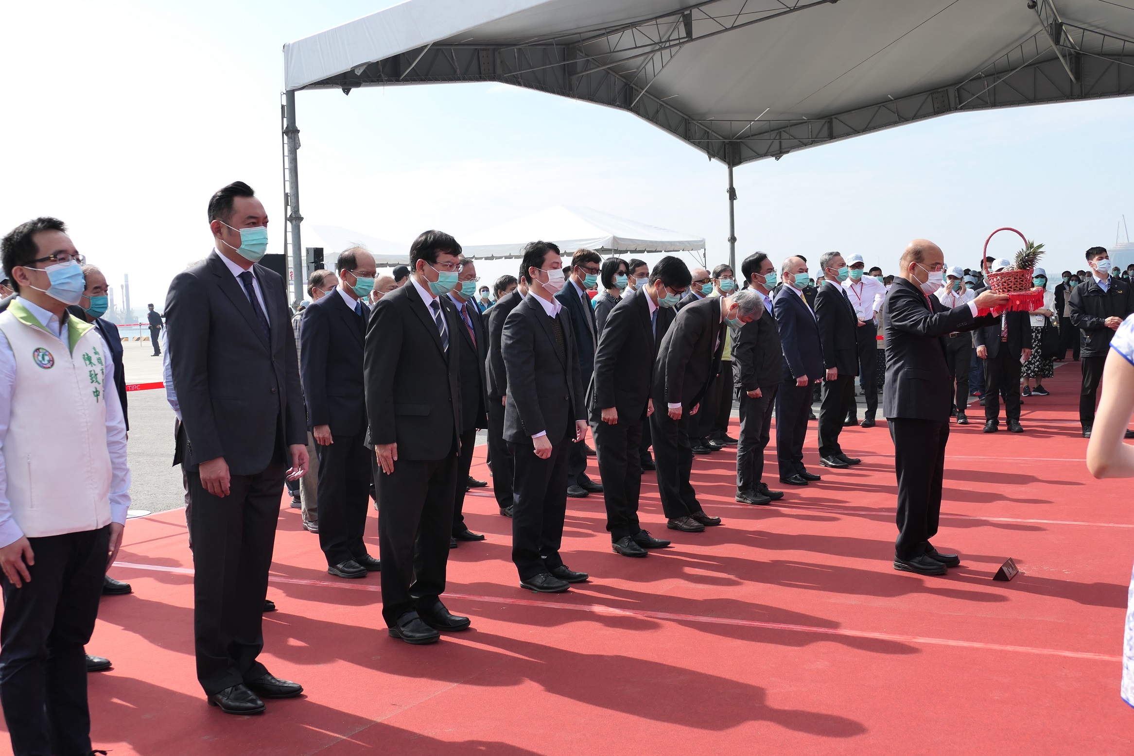 行政院長蘇貞昌今(29)日出席「高雄港第七貨櫃中心工程聯合開工祈福典禮」,交通部政務次長王國財、高雄市長陳其邁、港務公司董事長李賢義,行政院南部聯合服務中心執行長陳政聞一同參與開工祈福典禮,第七貨櫃中心不僅是台灣最大貨櫃營運基地,未來更有助於增加國際航運的競爭力。