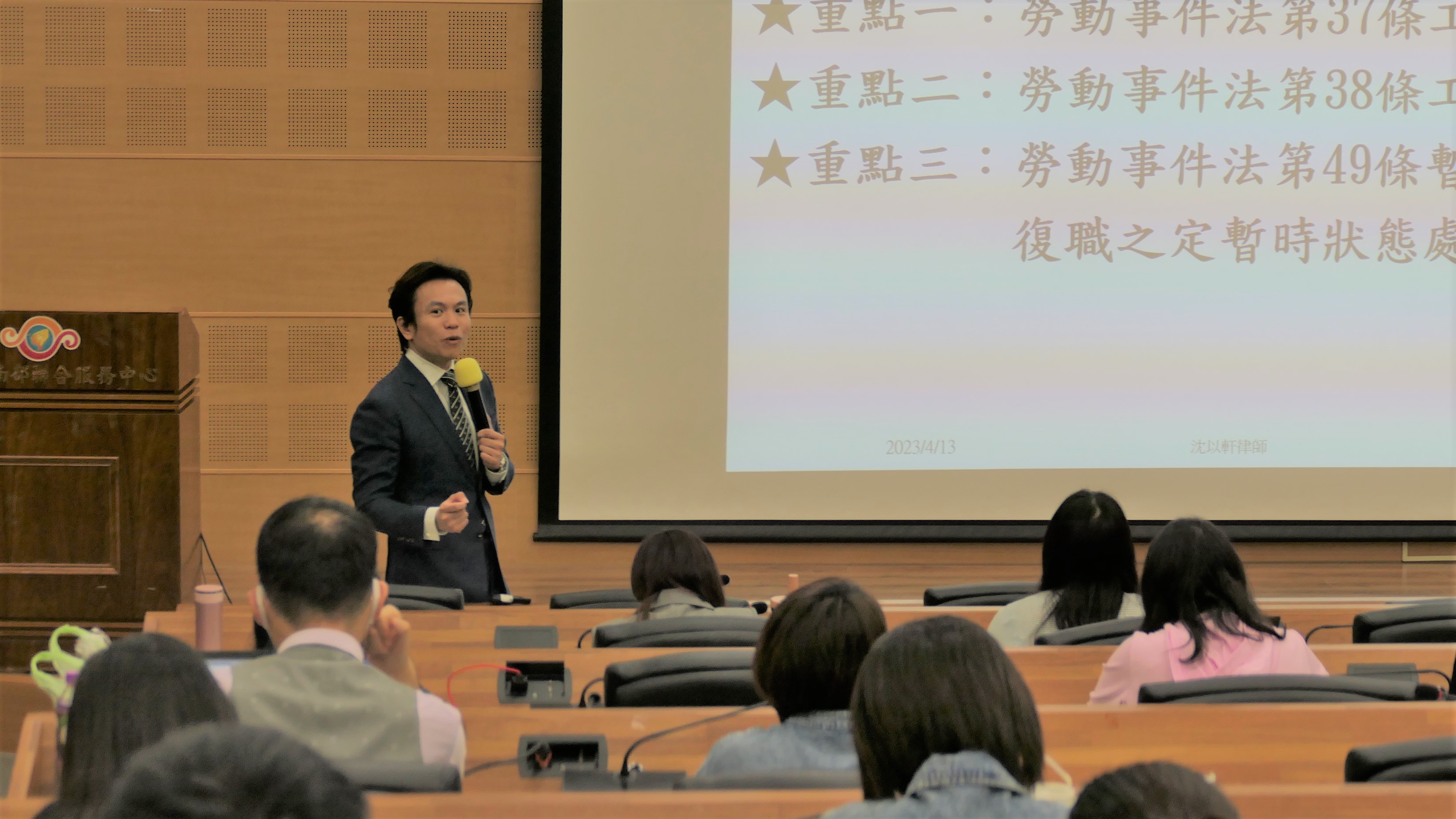 疫情解封後許多企業及勞工回復正常上班甚至開始出現加班狀況,但加班出勤的認定及加班費的給付,讓勞資雙方又愛又恨。行政院南部聯合服務中心今(13)日邀請到調解勞資議題的名師沈以軒律師,以主題「勞動法令函釋與重要勞資判決因應解析」舉辦講座,現場將近110位企業負責人及主管共同參與。