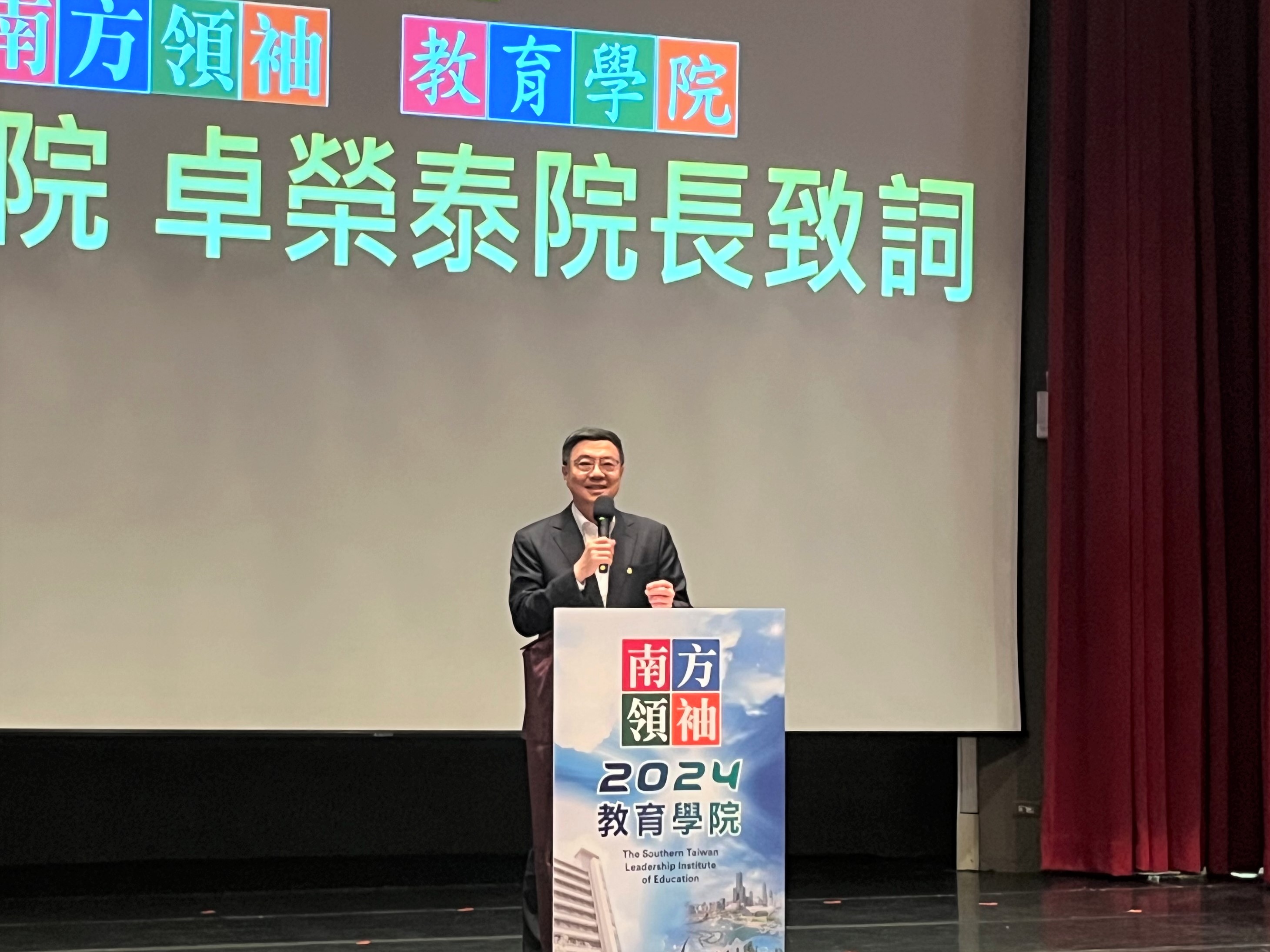 2024「南方領袖教育學院」由行政院長卓榮泰親臨現場頒獎並致詞,院長表示本屆2024「南方領袖教育學院」系列演講,許多政府部會首長在為期5天課程中,講授豐富的公務經驗與人生閱歷;在結業式中,他看見各位學員身上散發出自信的光芒,非常不容易;政府正積極推動「均衡人才」、「均衡產業」及「均衡臺灣」三大均衡目標,未來經濟部將規劃8年內要為各產業訓練20萬名國際人才,協助企業進行數位與淨零的「雙軸轉型」。