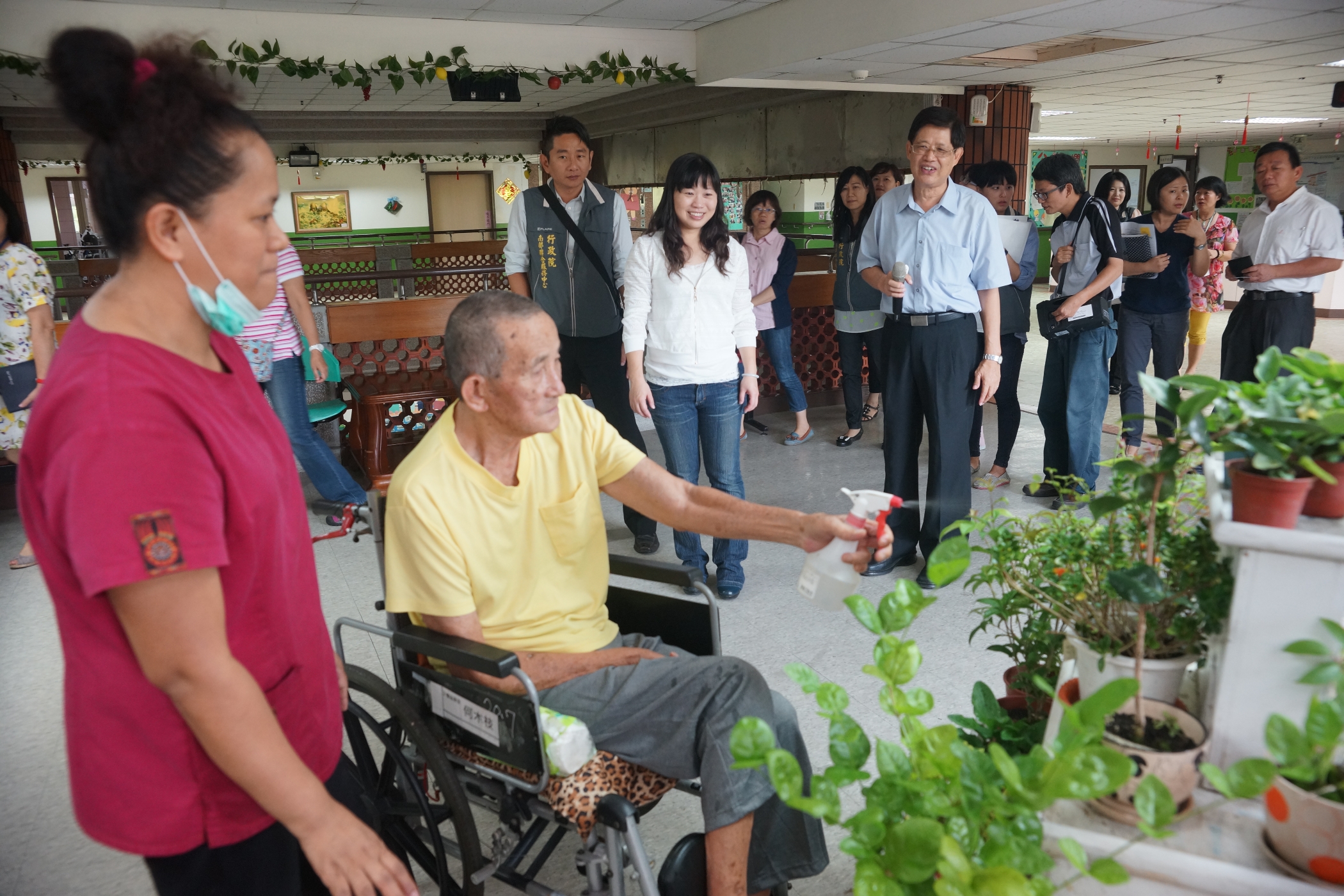 江玲君說,南區老人之家「失智院舍」去年興建完成,擴展收容服務業務,定可做好「長期照護」工作。蕭明輝指目前全院65歲以上老人包括長照、安養、養護及失智者計212人,最年長102歲;另收容12至18歲失依少年 53人。