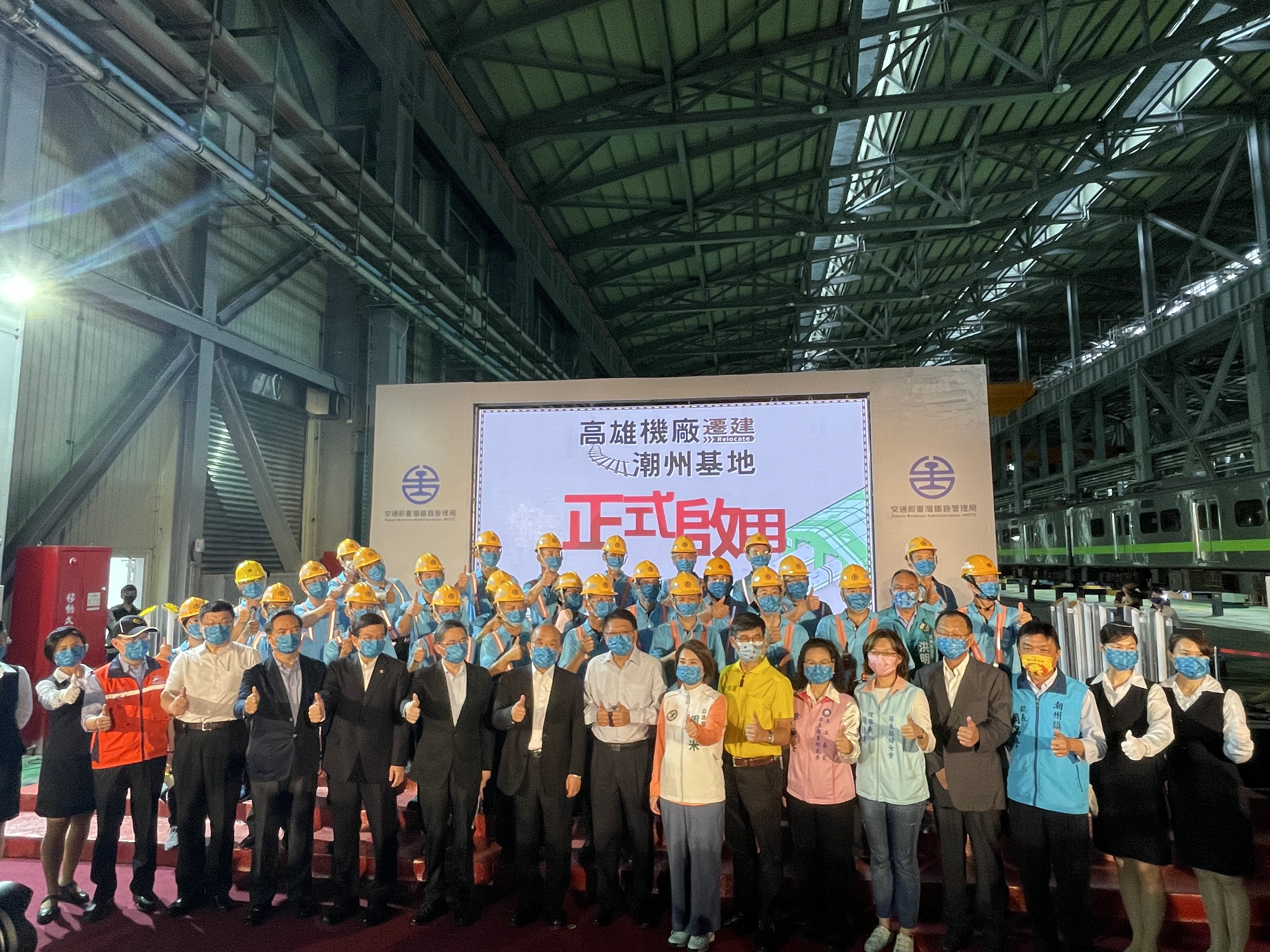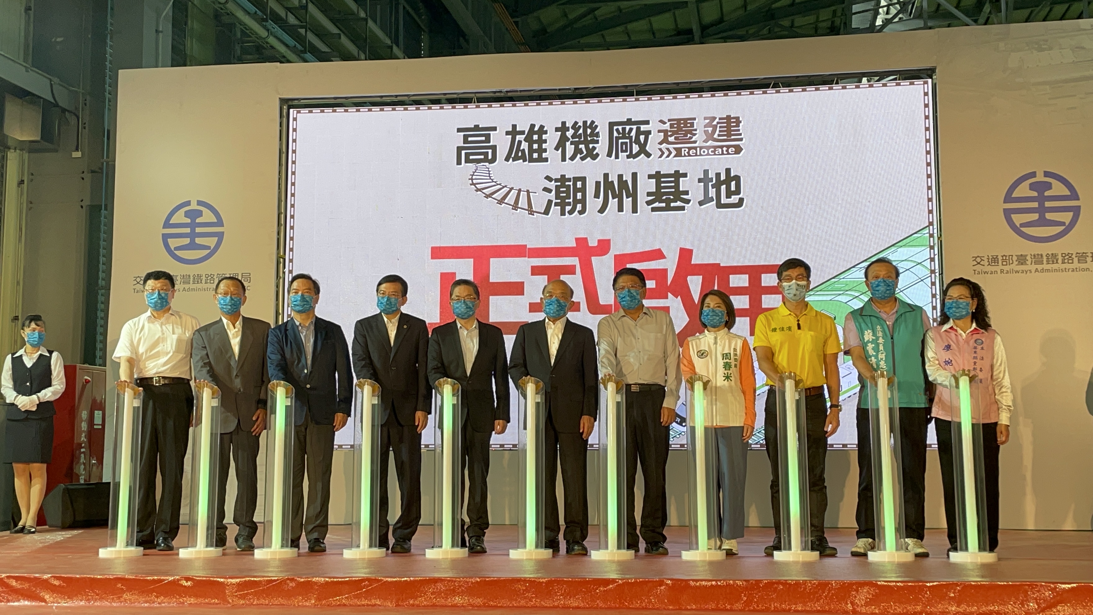 高雄機廠遷建潮州基地,啟用典禮今(18)日由行政院長蘇貞昌、屏東縣長潘孟安、交通部長王國材、台鐵局長杜微共同主持,他表示屏東潮州基地是全台最大機廠,擁有最先進的列車維修設備,大幅縮短維修作業所需的時間及人力,並提升列車維修量能。
