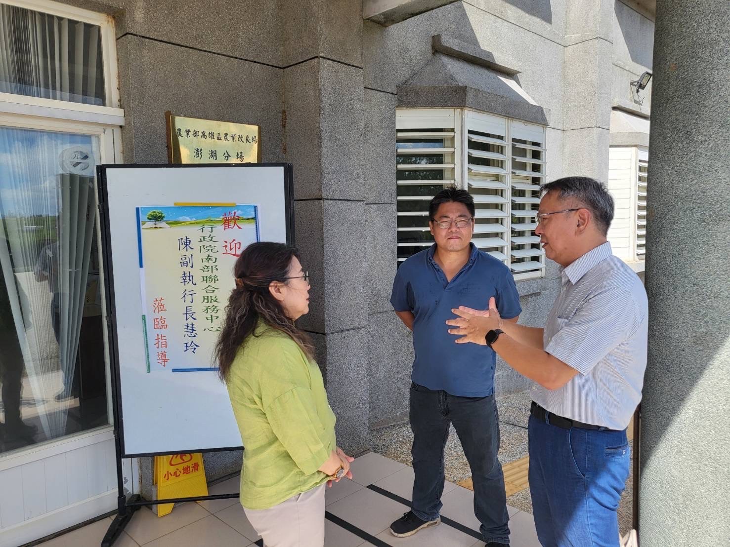 行政院南部聯合服務中心副執行長陳慧玲於今(31)日拜訪澎湖農業部相關單位,包括農業改良場澎湖分場、動植物防疫檢疫局臺中分局澎湖檢疫站及農糧署南區分署澎湖辦公室,了解各單位在澎湖區業務內容及探討改善支援方案。