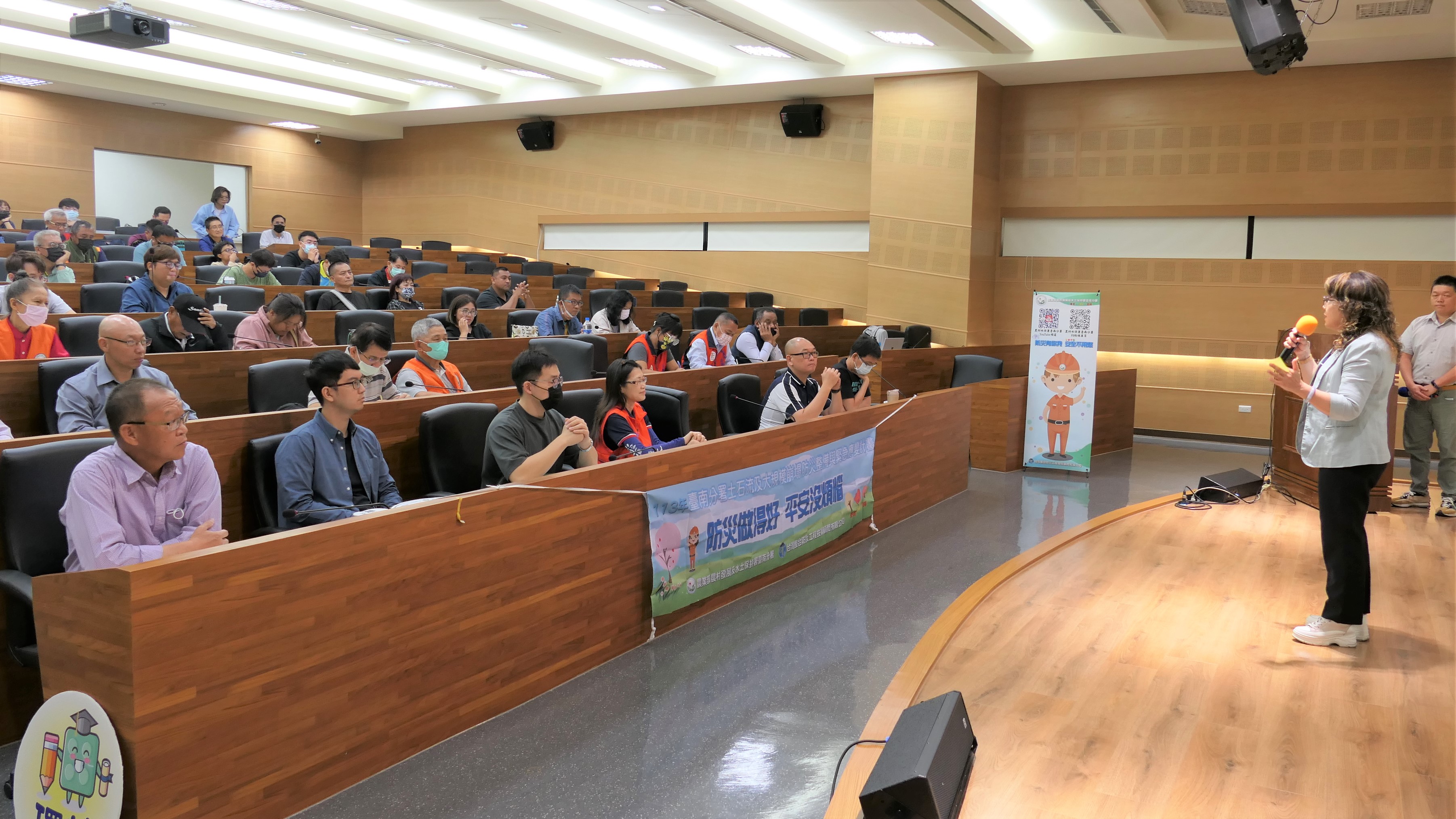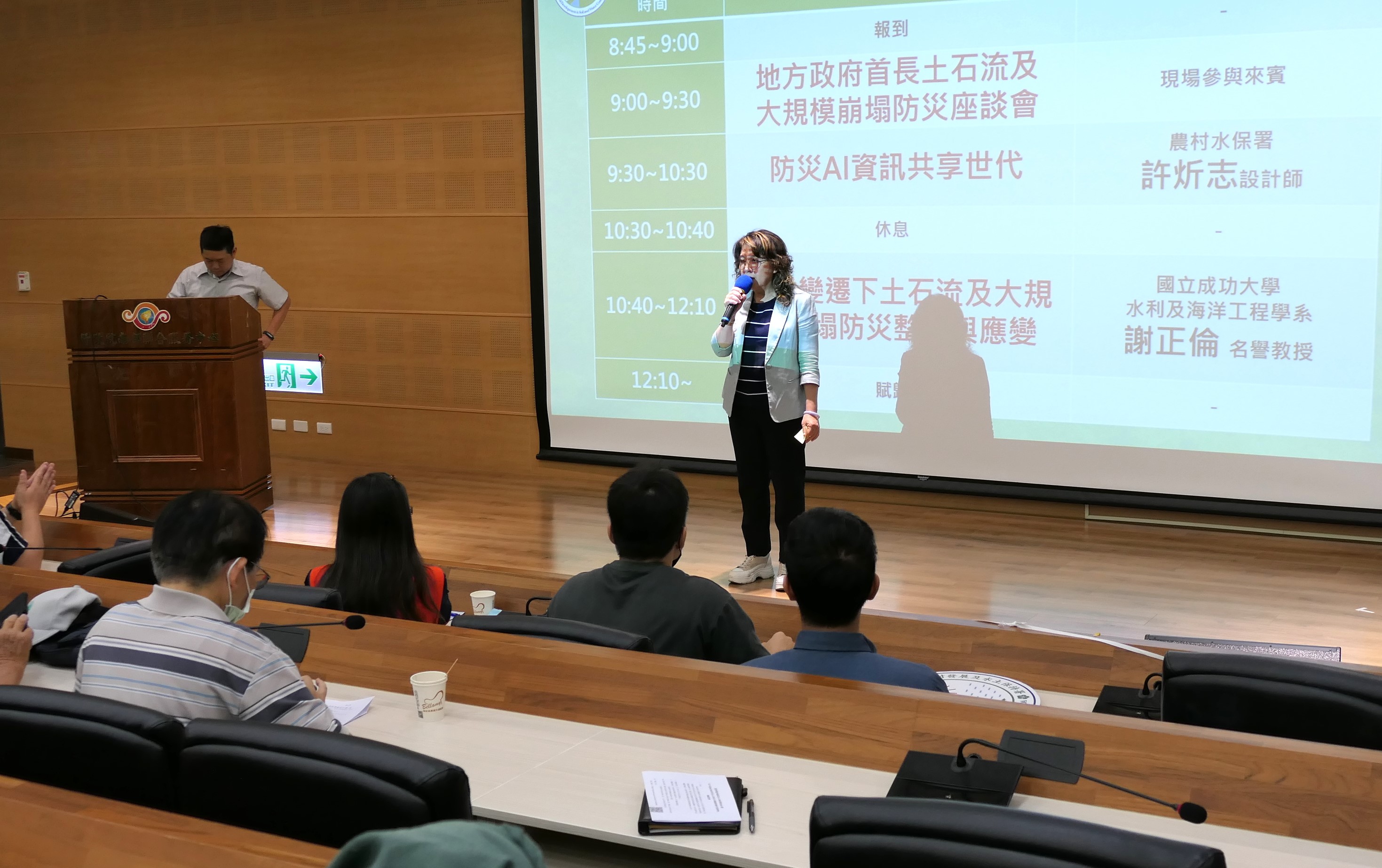 座談會邀請農村水保署許炘志設計師分享「防災AI資訊共享世代」最新資訊,以及國立成功大學水利及海洋工程學系謝正倫名譽教授主講「氣候變遷下土石流及大規模崩塌防災整備與應變」,藉由最新防災資訊及經驗,強化與各機關縱橫向聯繫,共同攜手做好防災減災工作。