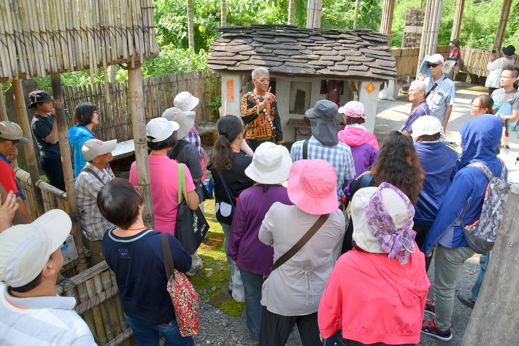 下午安排學員觀摩成功案例,首站由在文樂部落巡禮祖靈屋、頭目家、遷村石碑以及聚會所,接著前往新來義部落走訪遷村歷史館、穀倉及石板屋,透過原住民族傳統文化中,共做、共享、共食及共榮的互助力量,引導族人參與部落活動及推廣部落文化,並培養各族群文化獨立發展之能力。