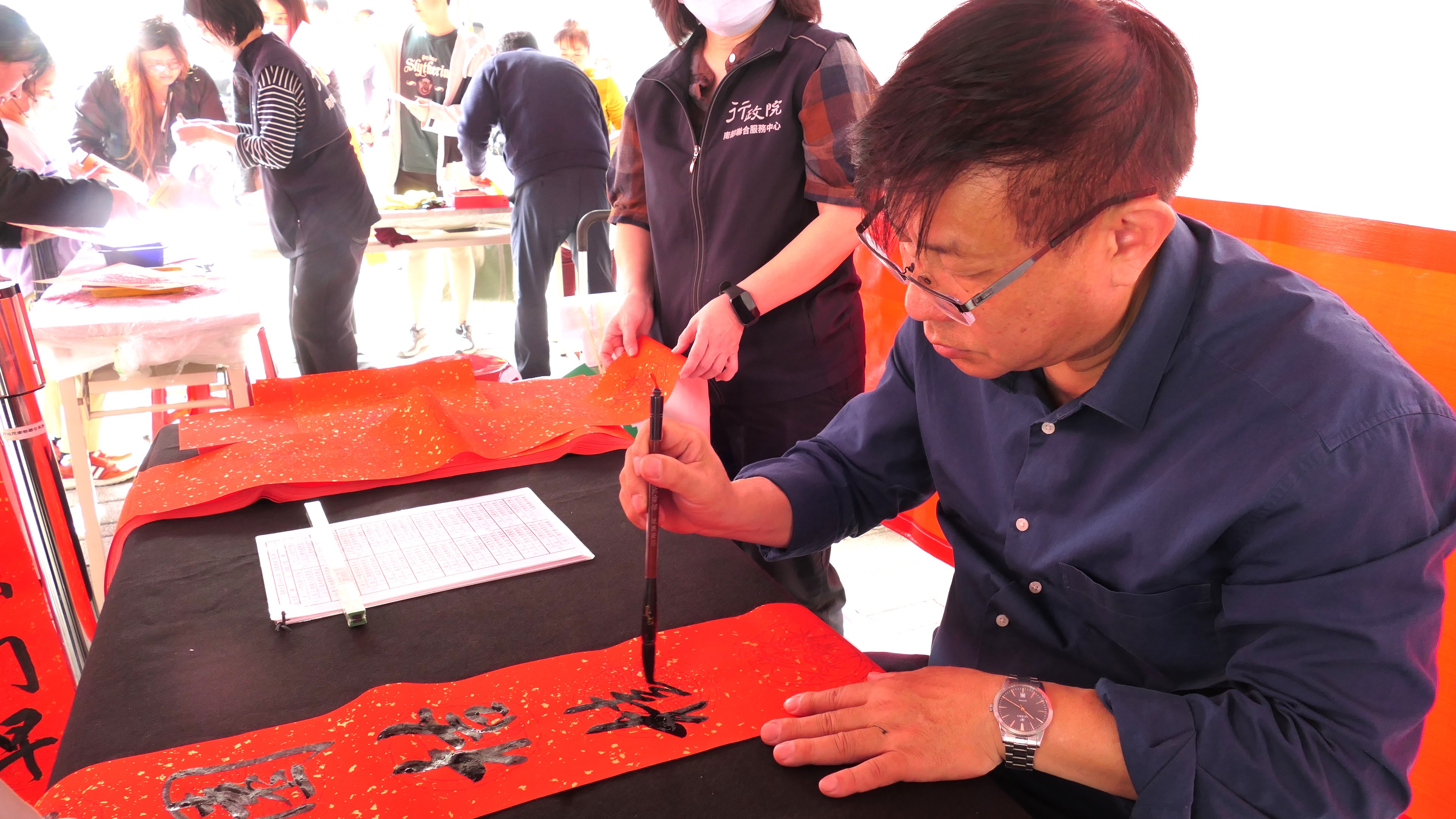 活動現場亦安排客、閩語學習互動環節,讓民眾在遊戲中自然學習節慶吉祥話,提升對母語的認同感與學習意願。現場人潮絡繹不絕,民眾傅先生表示,比起一般印刷品,手寫春聯的字跡更有溫度,也更有傳統文化的美感。民眾吳小姐則說,市面上名家手寫春聯一聯難求,非常感謝南服中心每年舉辦這樣的暖心活動。