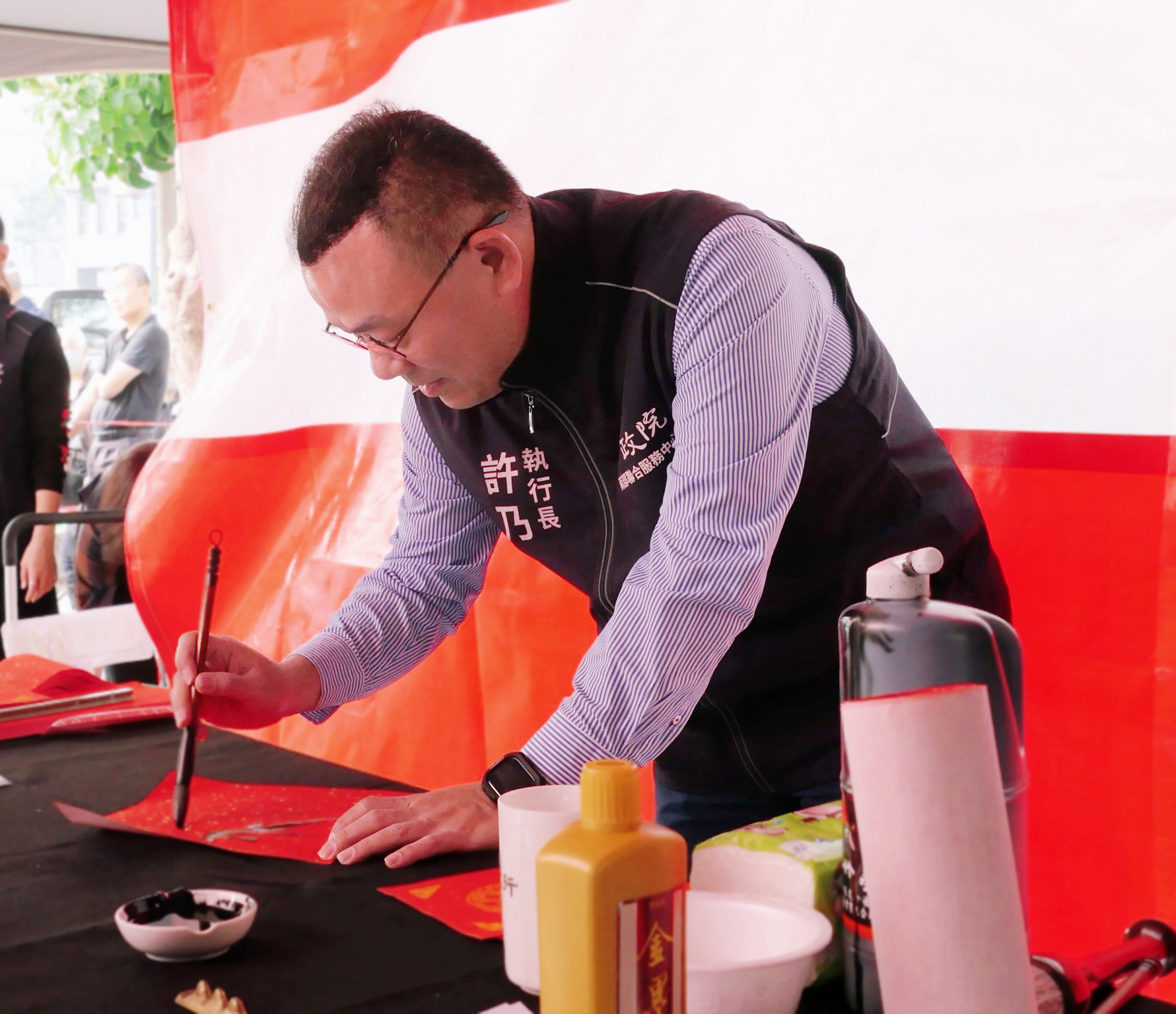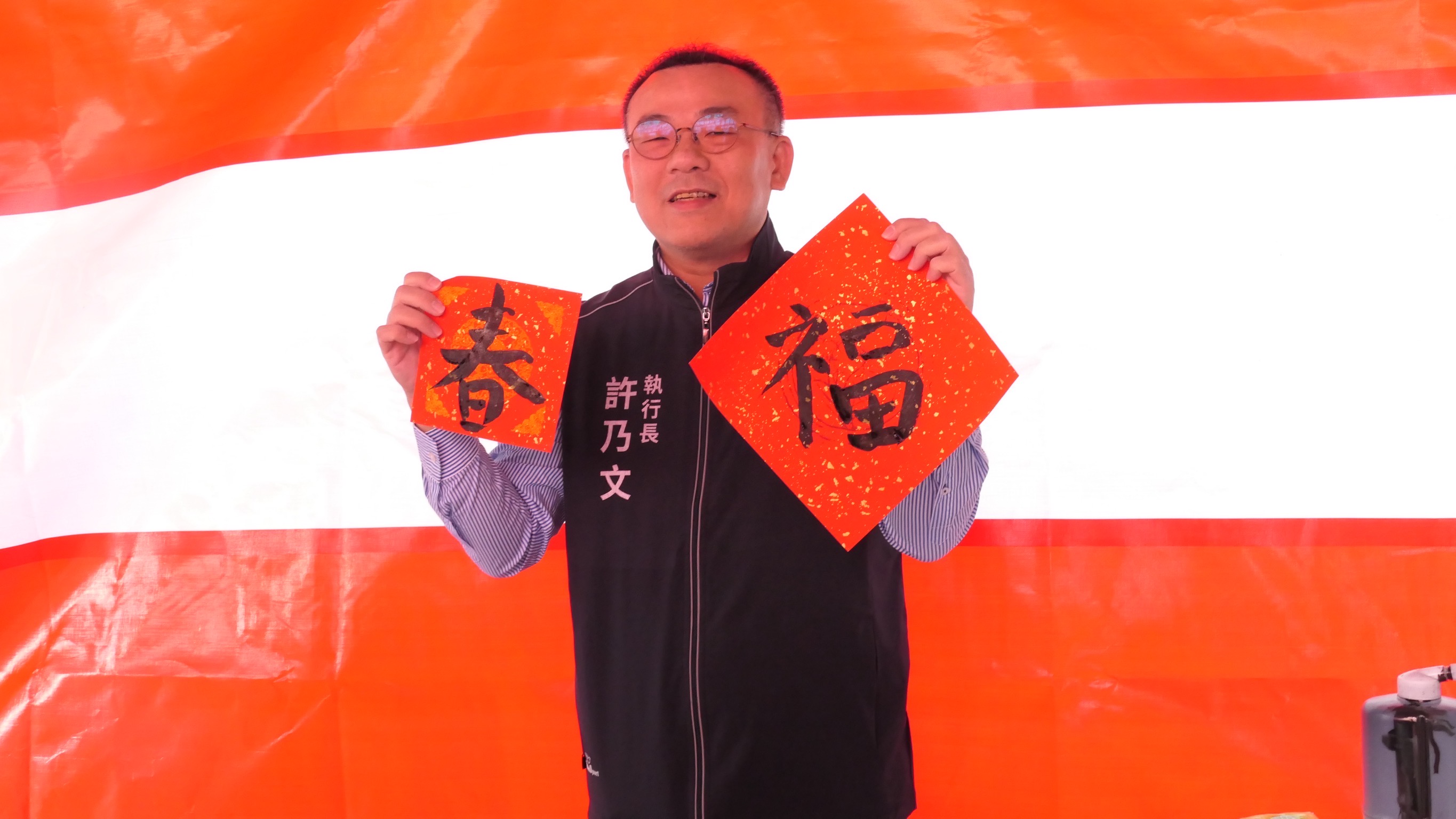 本次活動邀請藍進士、蔡武勳、楊壽雲、蔡典成、盧毓騏、蘇德隆及夏萬春七位書法名家親臨現場。大師們運筆行雲流水、氣韻生動,將對新一年的祝福化為一幅幅力透紙背的春聯墨寶。活動首日,許乃文執行長親自開筆題寫「春」、「福」二字,祈願社會繁榮與幸福;陳文亮副執行長則在六尺宣紙揮毫「馬吉」,筆觸雄渾有力,寓意馬年大吉。