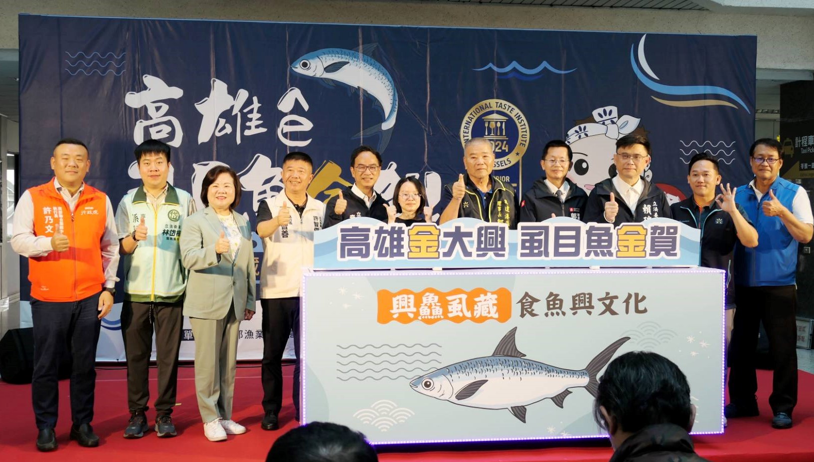 高雄市興達港區漁會於今(14)日於高雄市政府四維行政大樓舉辦「高雄ê虱目魚金賀」推廣活動,漁業署溫玉萍科長、行政院南部聯合服務中心許乃文執行長、高雄市政府郭添貴秘書長、高雄市海洋局鍾致遠副局長,以及興達港區漁會郭木村理事長、王文賢常務監事、郭展豪總幹事等各機關代表連袂出席一同推廣高雄優質的虱目魚,並在記者會上向民眾力推高雄虱目魚,鼓勵民眾選用優質的國產魚。