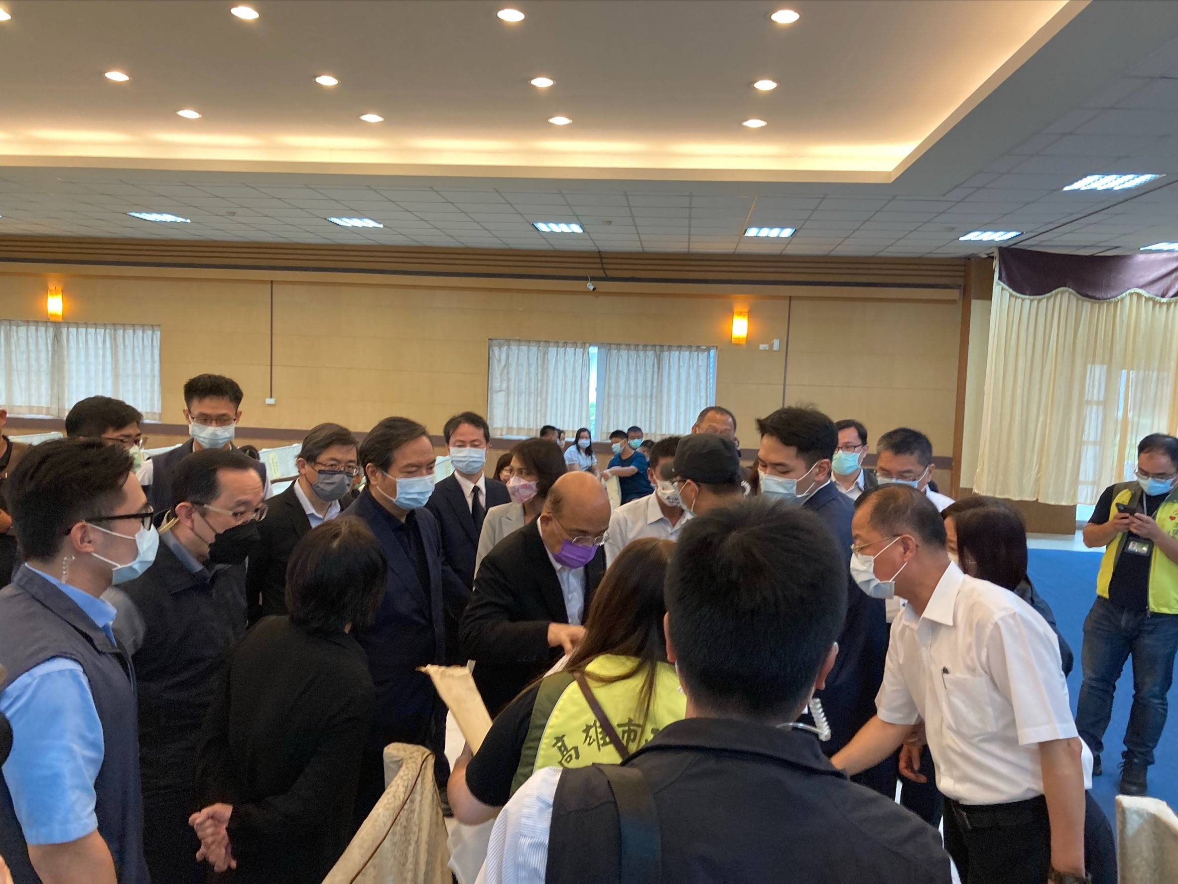 蘇貞昌院長上午11點34分到場,約49分離開,離去前蘇院長站在景行廳門口與高雄市長陳其邁交談,步行走回車上也持續與陳其邁市長說話,面對媒體提問,蘇貞昌未回應。