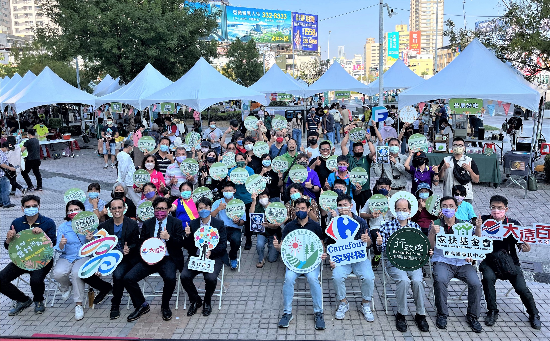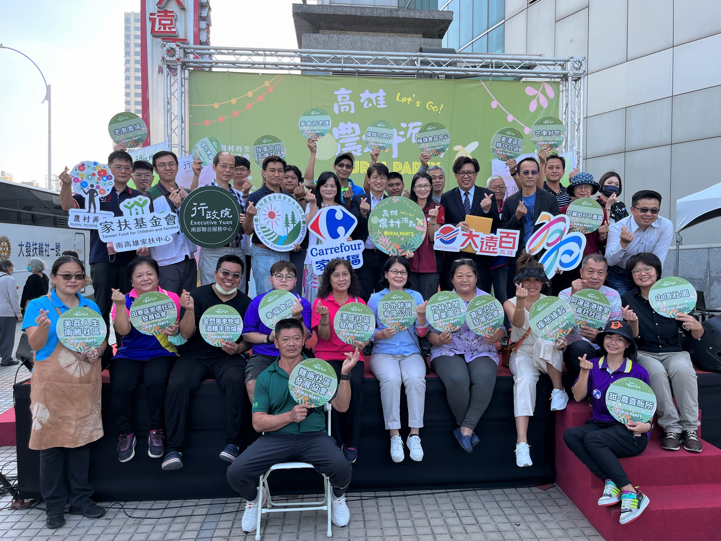 此外,高雄市政府團隊長年用心陪伴農在社區成長,除獲得行政院南服中心、水保局與社區夥伴的高度認同與信任,輔導佳績更是各方單位有目共睹,讓高雄遠東百貨、家樂福及家扶基金會等單位紛紛響應高雄市政府,一同加入農村再生推廣行列,成為高雄農村再生計畫的強而有力夥伴!