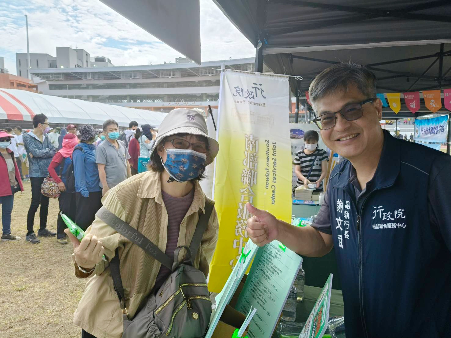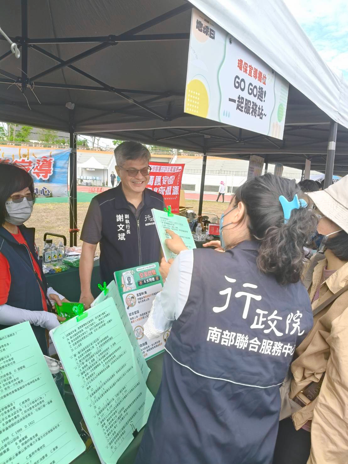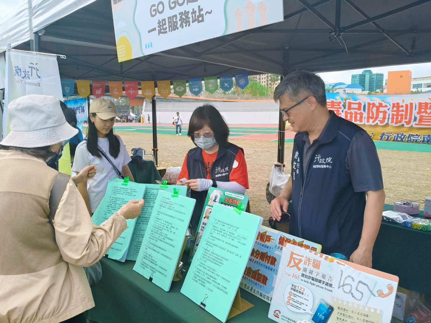 為響應地球日並提升民眾防詐騙意識,行政院南部聯合服務中心特別設置主題宣導攤位,結合「防詐騙」、「環保」及「公平交易」三大面向,透過有獎徵答的趣味互動,增進民眾對相關議題的認識。活動當日,中心副執行長謝文斌親臨現場指導,展現對市府推動地球日活動的重視與支持。市長陳其邁特別提及Coldplay演唱會使用觀眾飛輪發電的創舉,呼籲市民也能從日常生活實踐低碳行動,「高雄不僅是海洋首都,更要成為永續首都」。