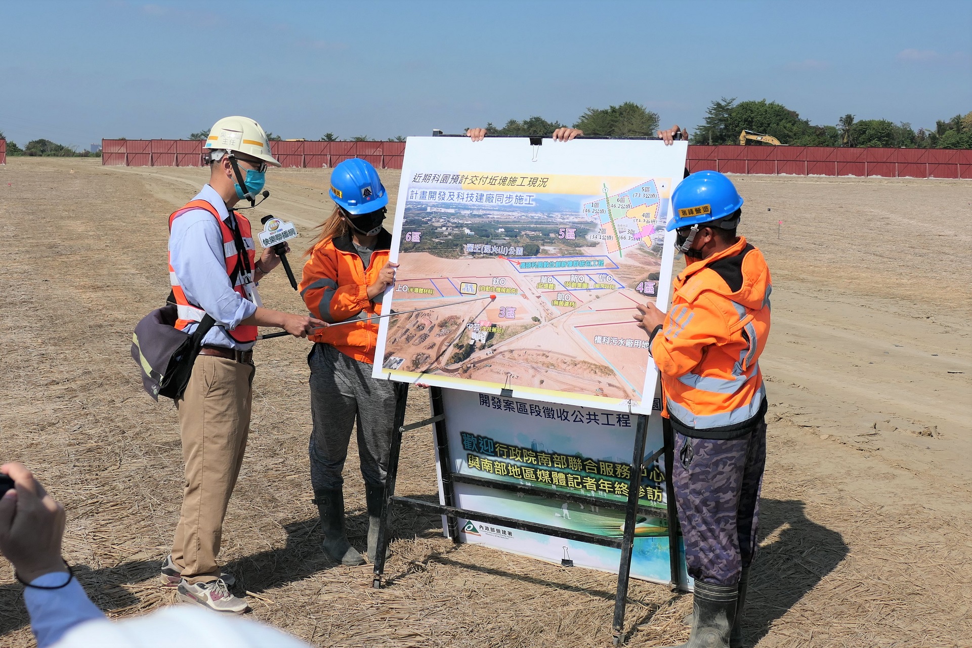 橋頭科學園區是高雄民眾及產業界非常期待的建設,行政院蘇貞昌院長相當重視,行政院南部聯合服務中心今(9)日在二位副執行長陳文亮及許乃文帶領下,偕同營建署南區工程處、國科會南科管理局,向媒體記者簡報目前園區公共建設現況及招商的進度。