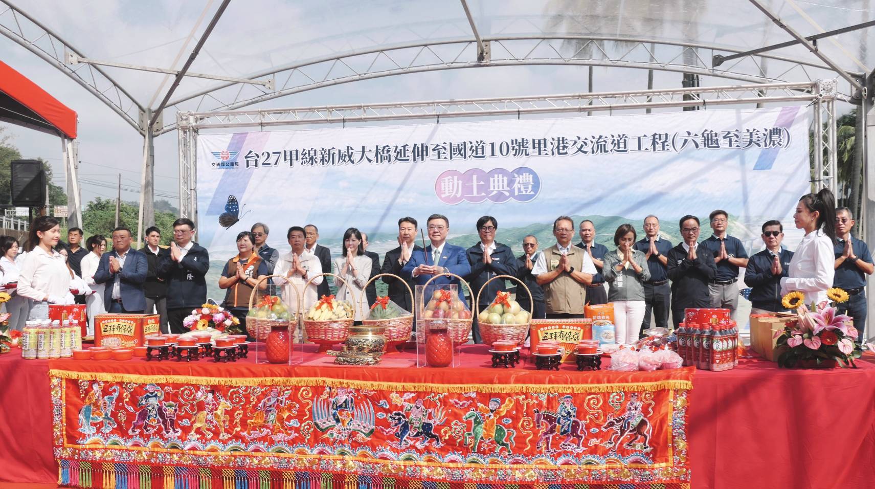 行政院長卓榮泰今(24)日出席「台27甲線新威大橋延伸至國道10號里港交流道工程(六龜至美濃)」動土祈福典禮時表示,本工程是高屏山區與國道交通網之間的重要連接工程,具有地方友善及環境友善兩大特色。未來完工後,除可打造健全、便利的高屏生活圈、協助農產品運輸,更可及時發揮搶救災、緊急醫療救護及運送功能,請工程團隊務必如期如質完成。