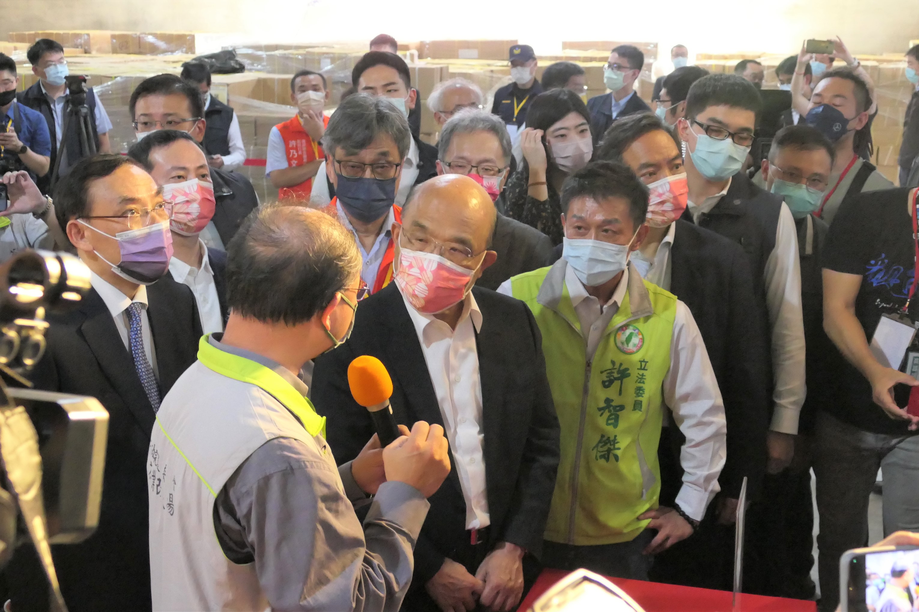 行政院長蘇貞昌今(15)日在南下前往高雄市前鎮區南區大型贓物庫出席「111年度查緝境外茶混充臺茶行動專案成效展示及頒獎表揚典禮」,表揚有功人員破獲107公噸私運中國茶葉,成功為國人健康與食安把關。