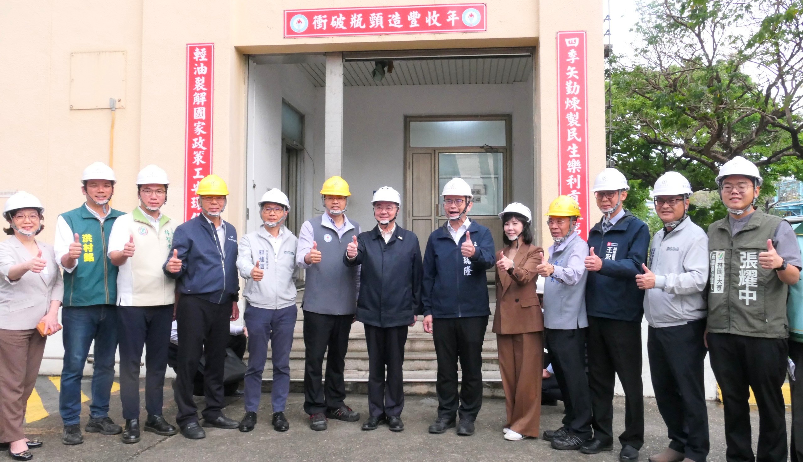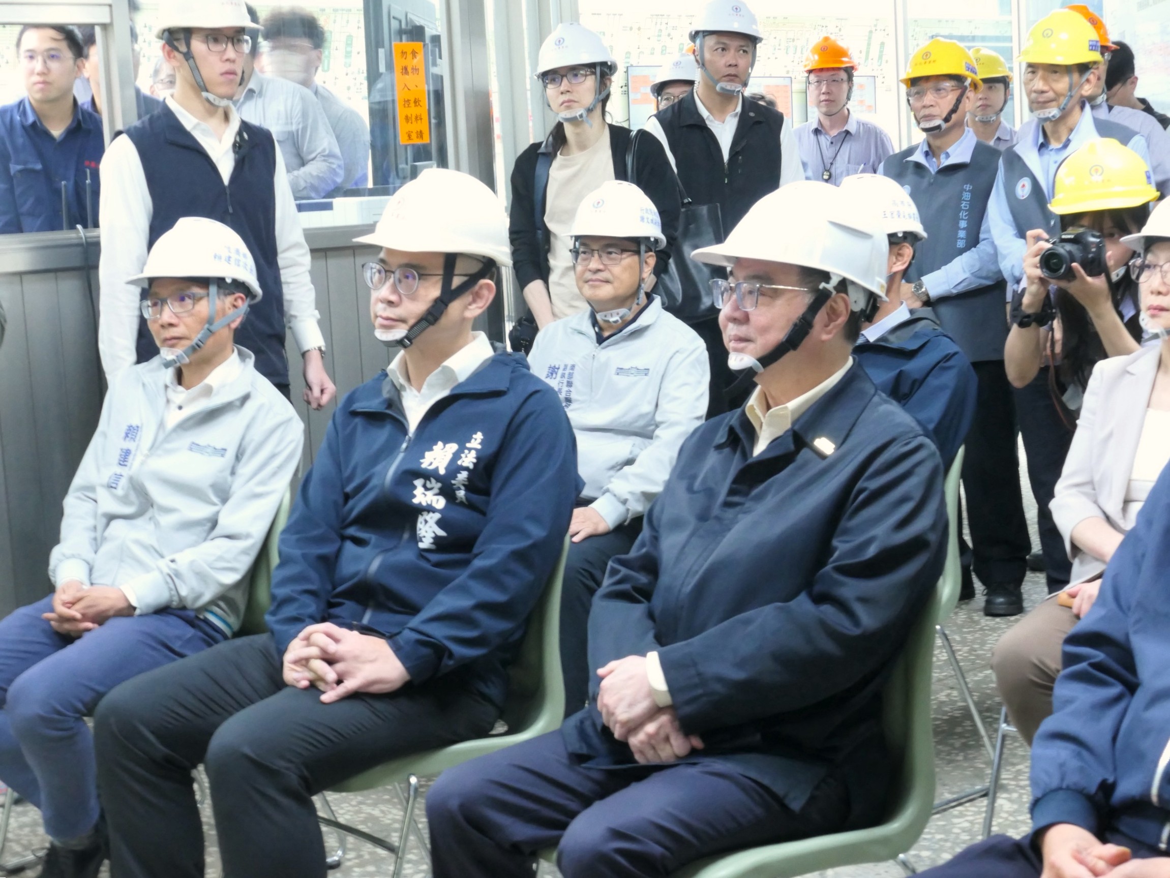 卓院長抵達後,首先聽取台灣中油股份有限公司石化事業部黃三泰執行長簡報,瞭解中油石化產業供應鏈等製程,並於致詞結束後,前往現地視察四輕工場,由中油公司李宗杰廠長說明工場製程、控制系統及工場設備等。卓院長特別致贈慰問品,鼓勵中油同仁的辛勞,並逐一握手打氣。隨後,卓院長偕同行政院李慧芝發言人、經濟部賴建信次長、行政院南部聯合服務中心謝文斌副執行長、賴瑞隆立法委員、高雄市政府王宏榮副秘書長、中油公司方振仁董事長、林珂如副總經理等人合影留念。
