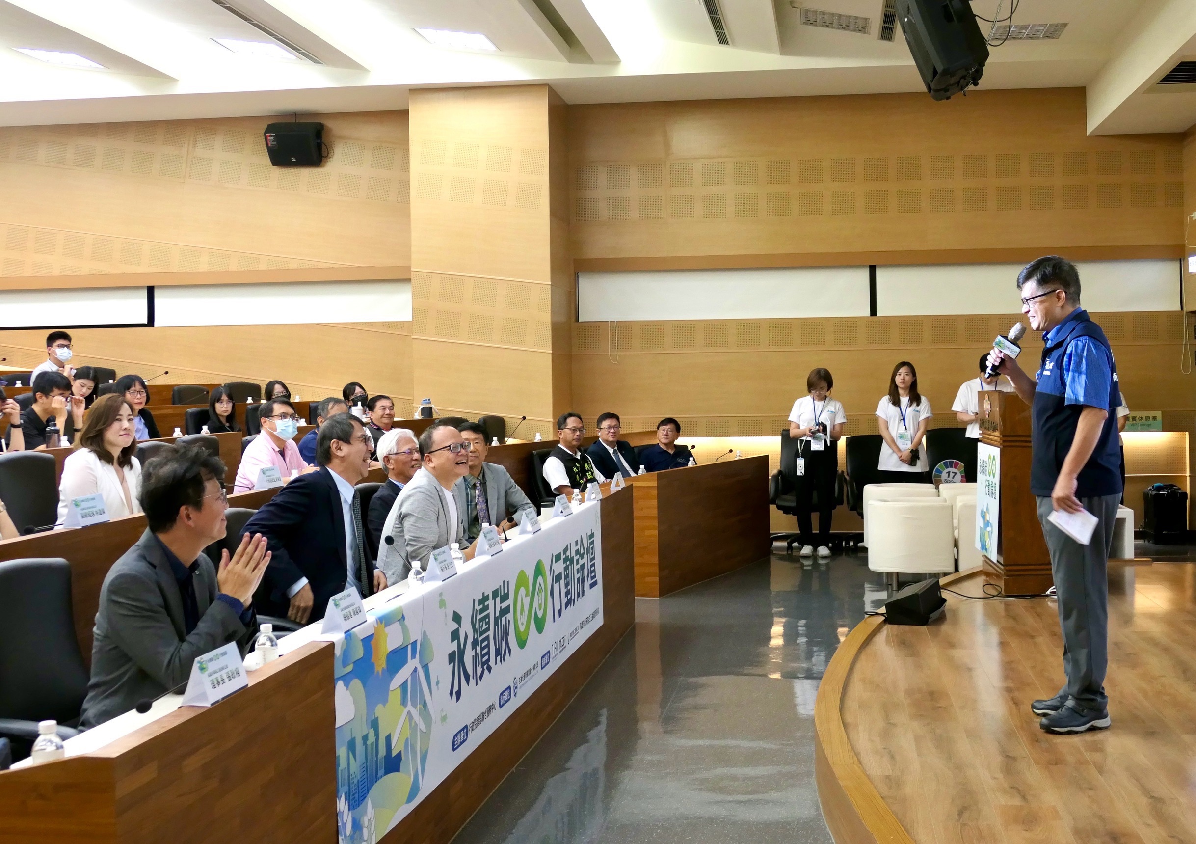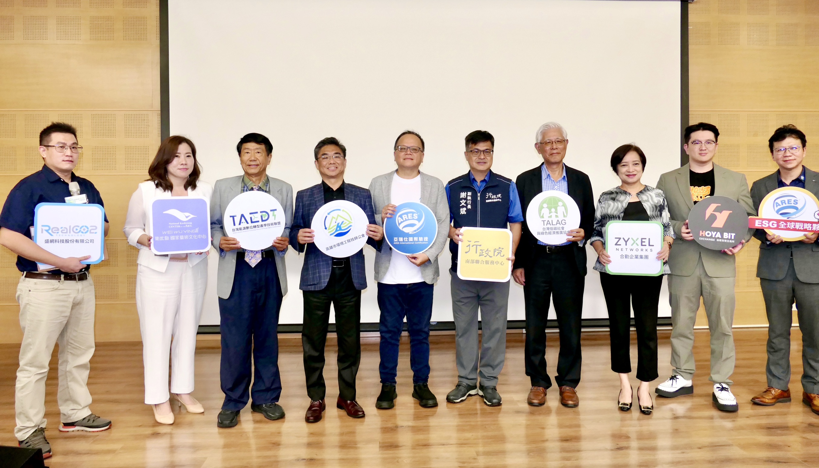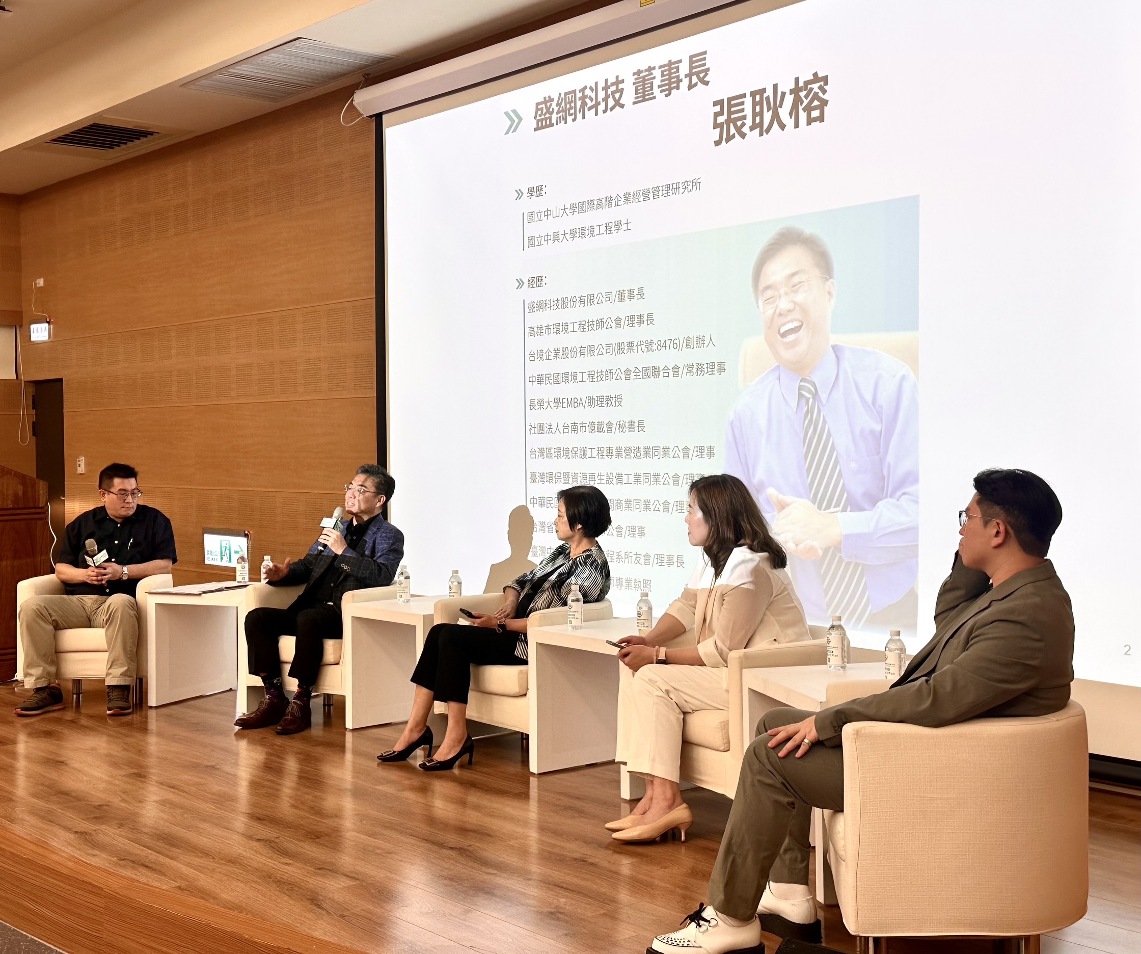 論壇亮點「永續圓桌聊天室」則由盛網科技股份有限公司總經理潘宣宇主持,邀請高雄市環境工程技師公會理事長張耿榕、合勤企業集團永續長林錦蘭、衛武營國家藝術文化中心行政副總監謝瑞香、禾亞數位科技副總經理林逸騏一同對談,從科技製造、文化藝術到數位轉型等不同面向,分享跨產業減碳挑戰與創新實踐,交流如何在不同領域推動減碳與永續發展的行動力。