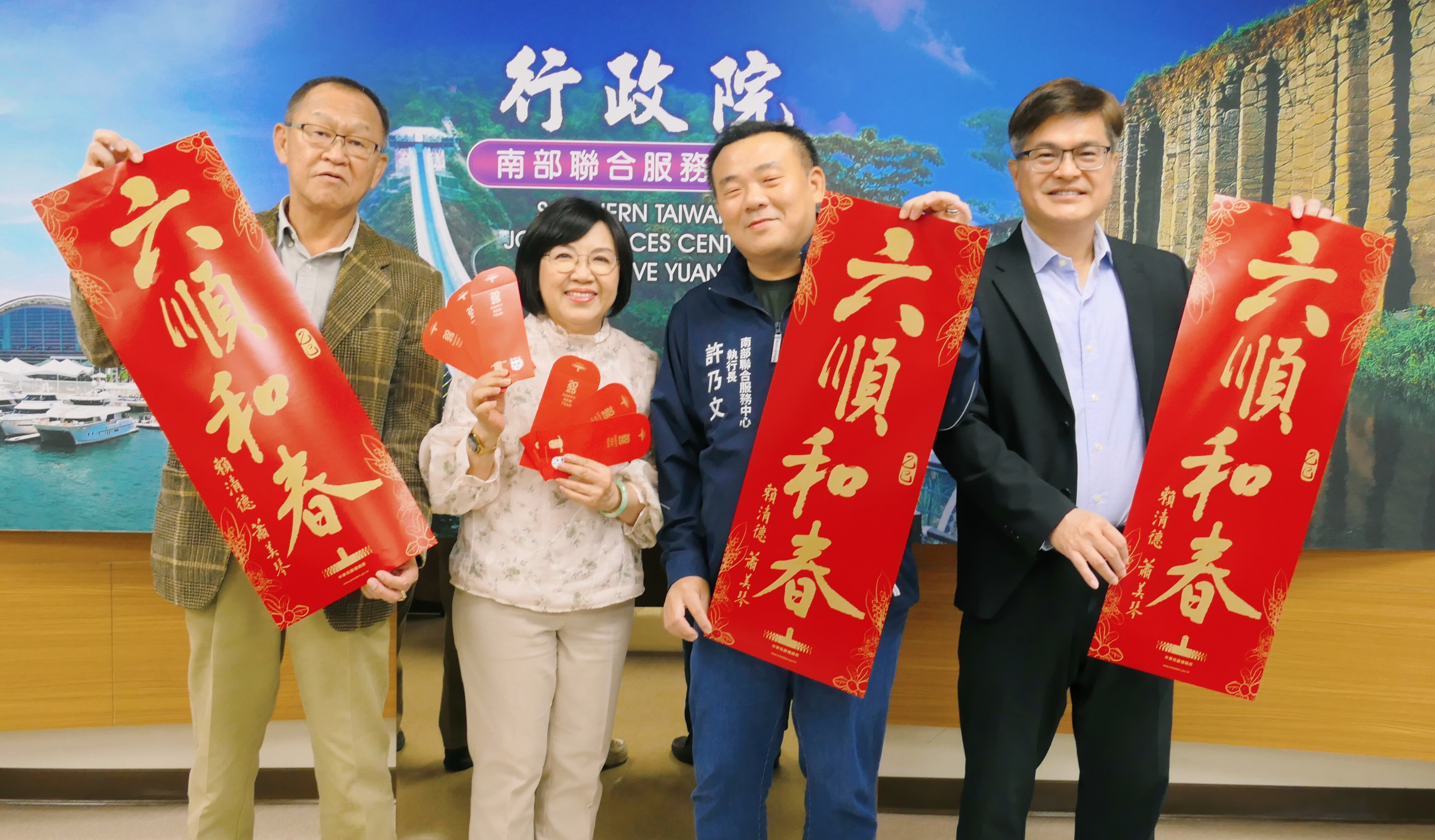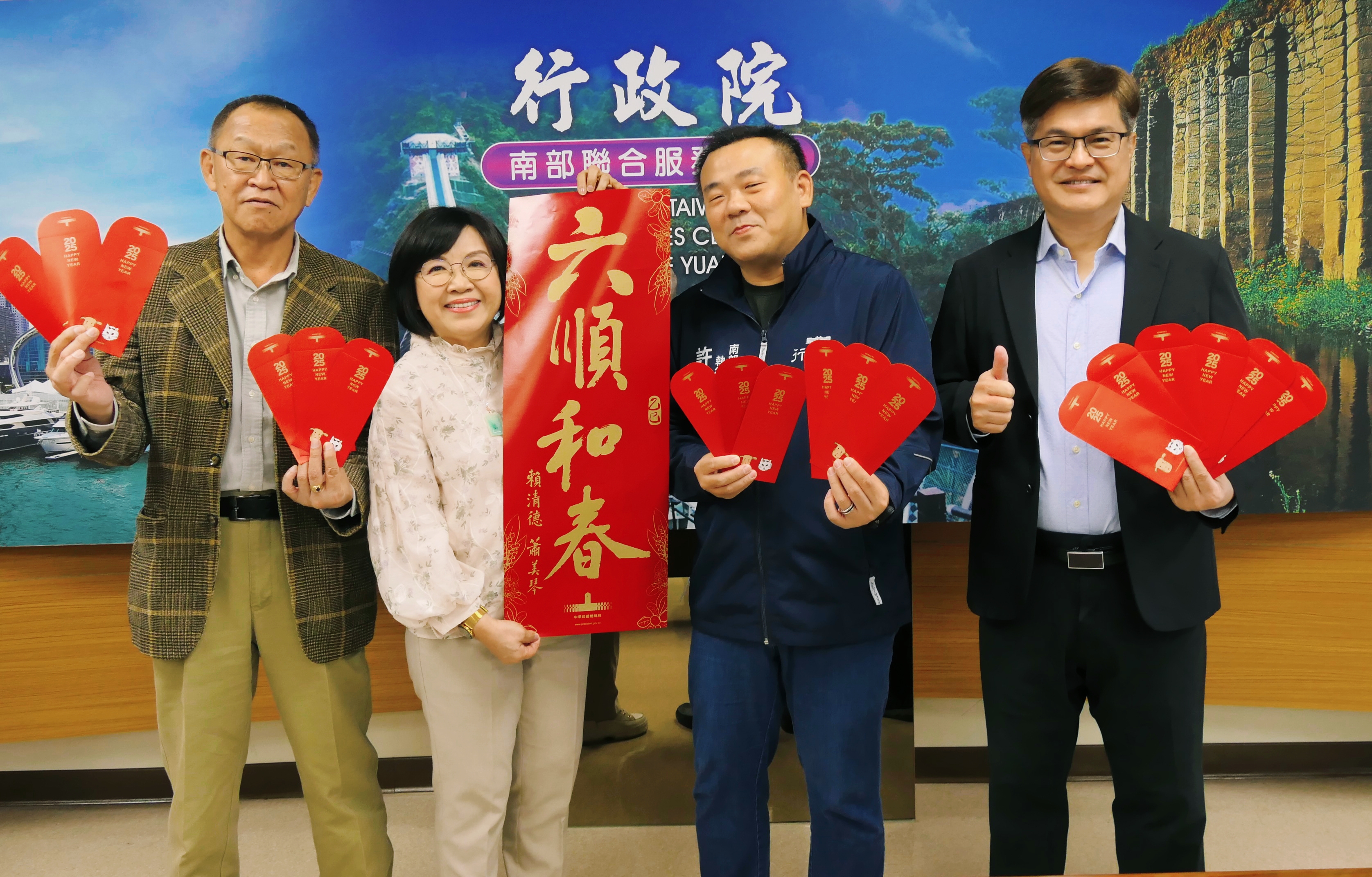 另外,行政院南服中心於114年1月14、15日一連兩天上午9點到12點,在一樓廣場舉辦「名家揮毫寫贈春聯」活動,邀請5位書法名家,為民眾寫贈春聯,今年加碼邀請傳統民俗技藝老師現場示範吉祥結編織,並發贈400個代表祈求平安與幸福的吉祥結,贈完為止,歡迎民眾踴躍索取。
