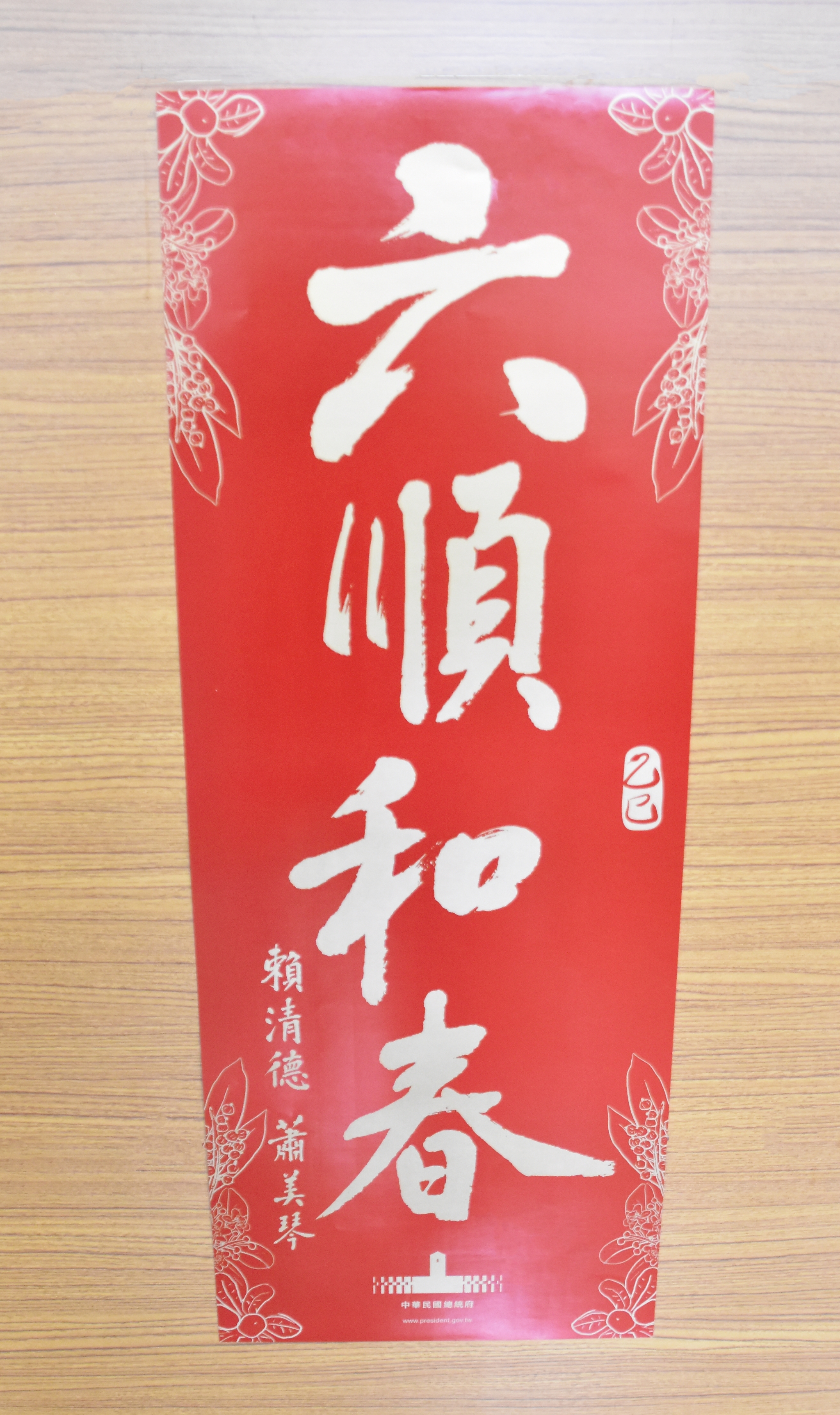 郭雅慧發言人表示,此次春聯賀詞「六順和春」係由出身臺南的臺語文學家白聆先生發想,並由書法名家陳吉山先生揮毫。蛇於生肖當中排名第六,臺語亦稱「蛇」為「溜」,有流利順暢之意;「和春」則象徵和煦溫暖、興盛有餘之意,「六順和春」也代表「六六大順,好甲有賰(ㄕㄨㄣˇ)」,祝福家家戶戶豐衣足食、榮景興盛。