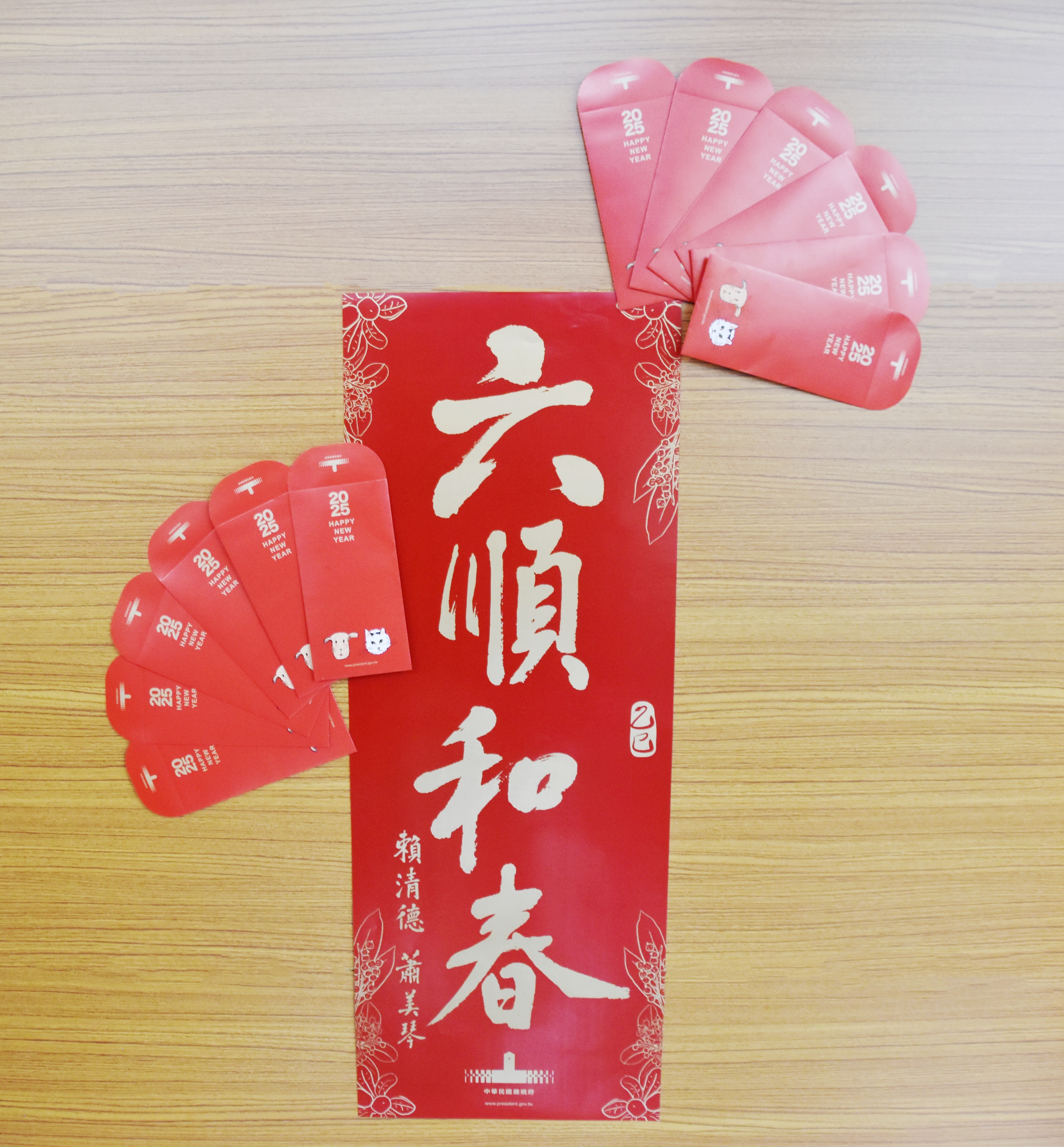 為迎接114年(歲次乙巳)「蛇」年的到來,總統府特別製作總統、副總統賀年卡及春聯、紅包袋、福袋,傳達總統及副總統的新春祝福,祝福國人新年萬事順心如意、國運繁榮興盛。