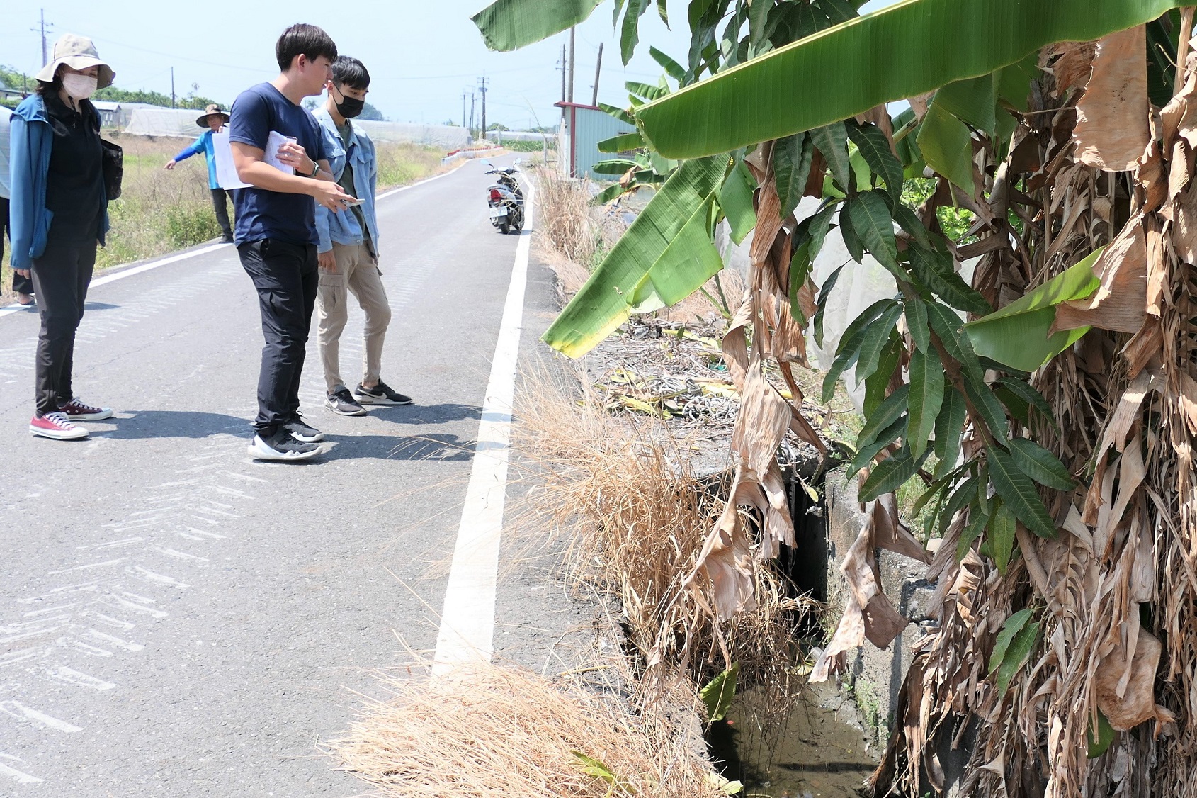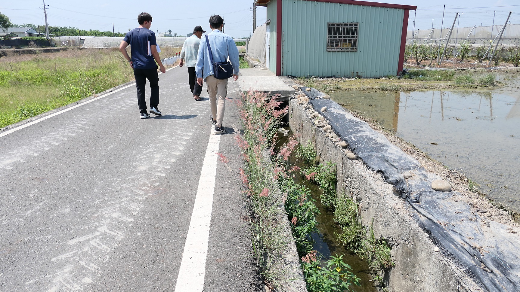 舊庄村私埤圳旁農路前端雖有排水溝,但因溝渠太小,且年久失修,農路後端無連接的排水溝,易造成路面積水及路基被掏空的問題,舊庄村陳寶川村長與曾家鼎鄉代表希望能透過行政院南服中心及農業部農村發展及水土保持署臺南分署協助申請排水溝拓寬工程來改善,於今(22)日由行政院南服中心副執行長陳文亮會同農村發展及水土保持臺南分署、高樹鄉公所等相關人員一同前往會勘了解現況。
