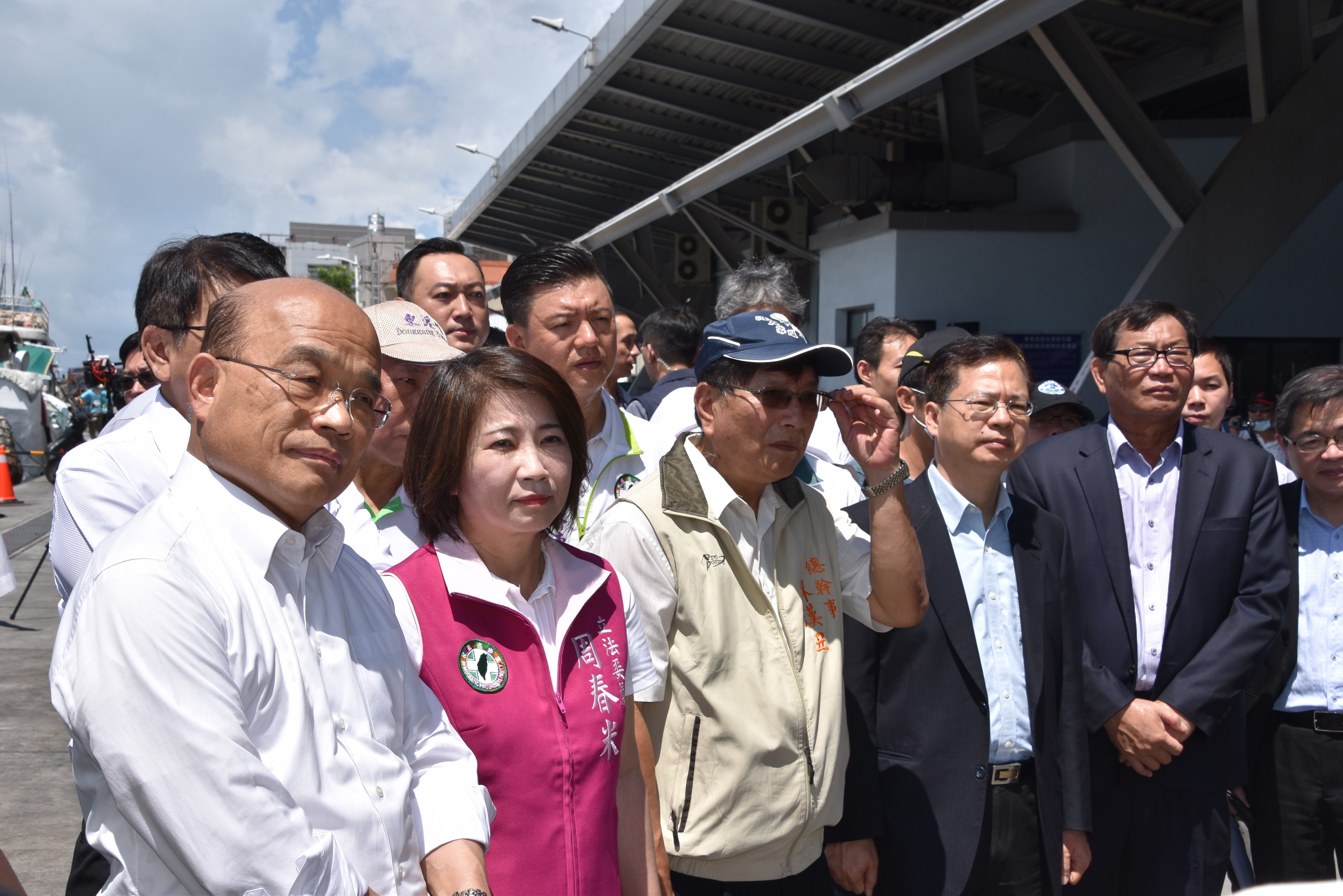 行政院長蘇貞昌在屏東縣長潘孟安、農委會主委陳吉仲陪同下,30日到屏東視察東港鹽埔漁港的浚深工程,行政院南部聯合服務中心執行長陳政聞及副執行長許國華亦陪同前往,去年2月27日東港區漁會向蘇院長反映,希望能將3米深的漁港浚深到6公尺,他當下答應,今特別來看工程進度。同時對此次疫情受影響的漁民也表示,中央都依蔡總統的指示大力補助,希望一起度過難關,讓漁民生活更好大賺錢。