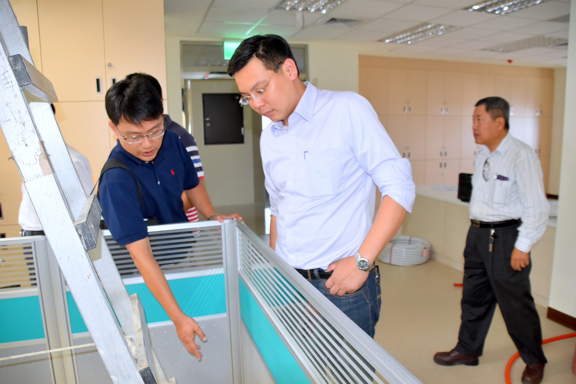 洪村銘執行長說,今年2月1日他甫上任立即親自勘查新建大樓裝修工程,並持續掌握工程進度,請工作團隊注重施工品質的同時也要留意施工安全,對於用電部份應特別加強巡視和檢查,避免引起電線走火等災害發生。另請營建署南工處及詠大營造公司特別注意申請文件時效及內容完整性,以利早日完成申請,順利進駐。