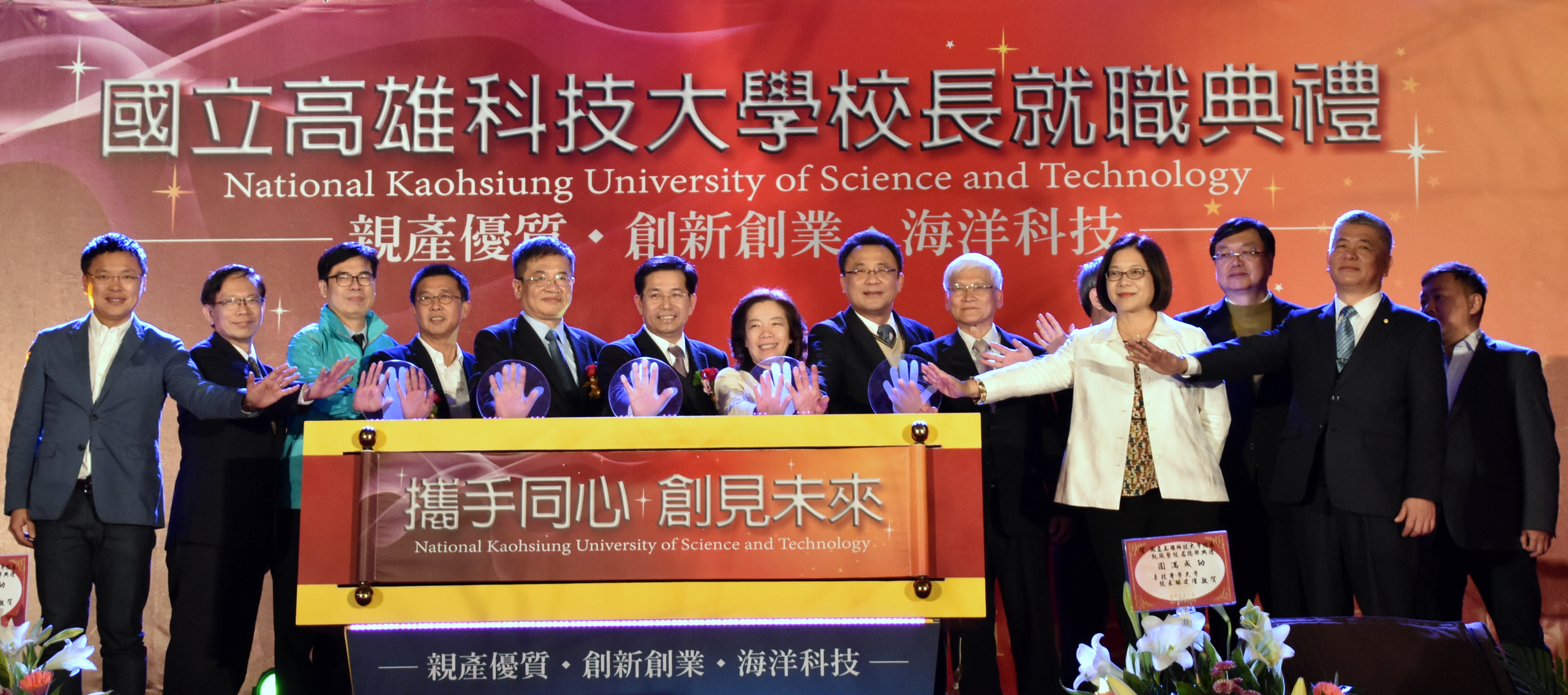 【高雄/報導】為整合國家教育資源發揮最大效益,國立高雄應用科技大學、國立高雄第一科技大學與國立高雄海洋科技大學自今(107)年2月1日正式合併為「國立高雄科技大學」。高科大1日在建工校區舉行校名揭牌暨首任校長就職典禮,以融合「親產優質」、「創新創業」及「海洋科技」三大特色為主軸,在教育部長潘文忠、行政院南部聯合服務中心執行長黃義佑、教育部技職司長楊玉惠、高雄市政府副秘書長遊尚儒、產官學研各界貴賓以及全校師生的共同見證下開創新紀元,成為全國技職教育最大校院。