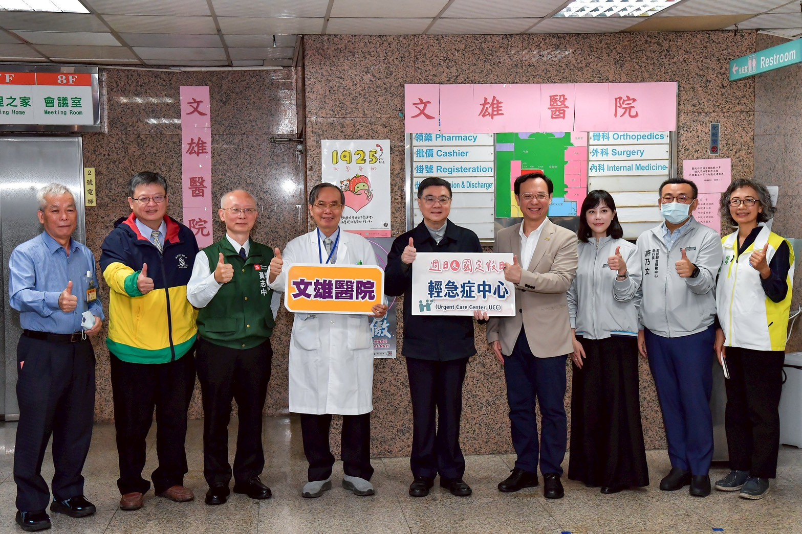 卓院長提到,全國今年共開設13處UCC,其中高雄市唯一開設的醫院就是文雄醫院,感謝文雄醫院楊錫添院長及醫護團隊同仁犧牲春節連假服務市民。卓院長說,春節期間常見呼吸道感染、腸胃不適、小兒科疾病及外傷等輕急症狀況,透過UCC的開設,能讓民眾在第一時間獲得專業診療,不僅減輕大型醫院急診壓力,也讓市民更加安心。