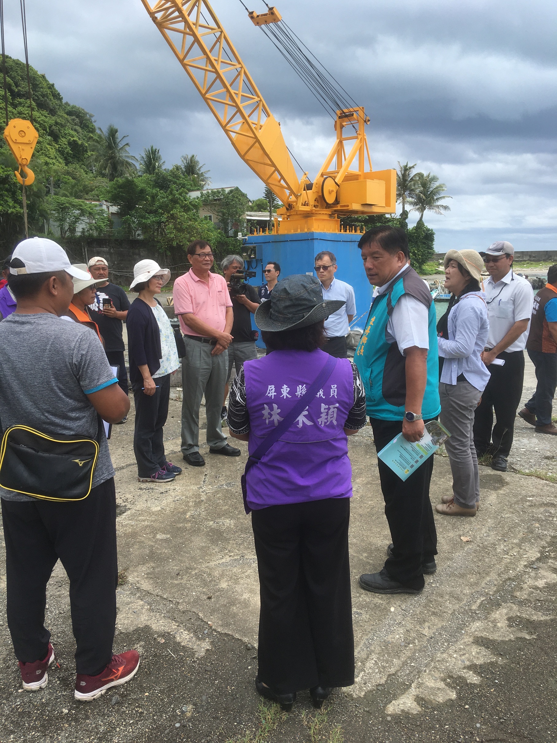 屏東縣牡丹鄉旭海漁港係該縣原鄉部落唯一漁港,因港區長年淤積嚴重且基礎設施老舊待修,10日由行政院南部聯合服務中心許國華副執行長,率員會同伍麗華立法委員、漁業署王清要組長、屏東縣政府陳仕元課長、原住民委員會蔡妙凌副處長、海洋委員會王茂城處長、恆春漁會王銀清總幹事及牡丹鄉潘壯志鄉長等相關單位一同前往會勘,勘查漁港現存問題及協調解決方法。