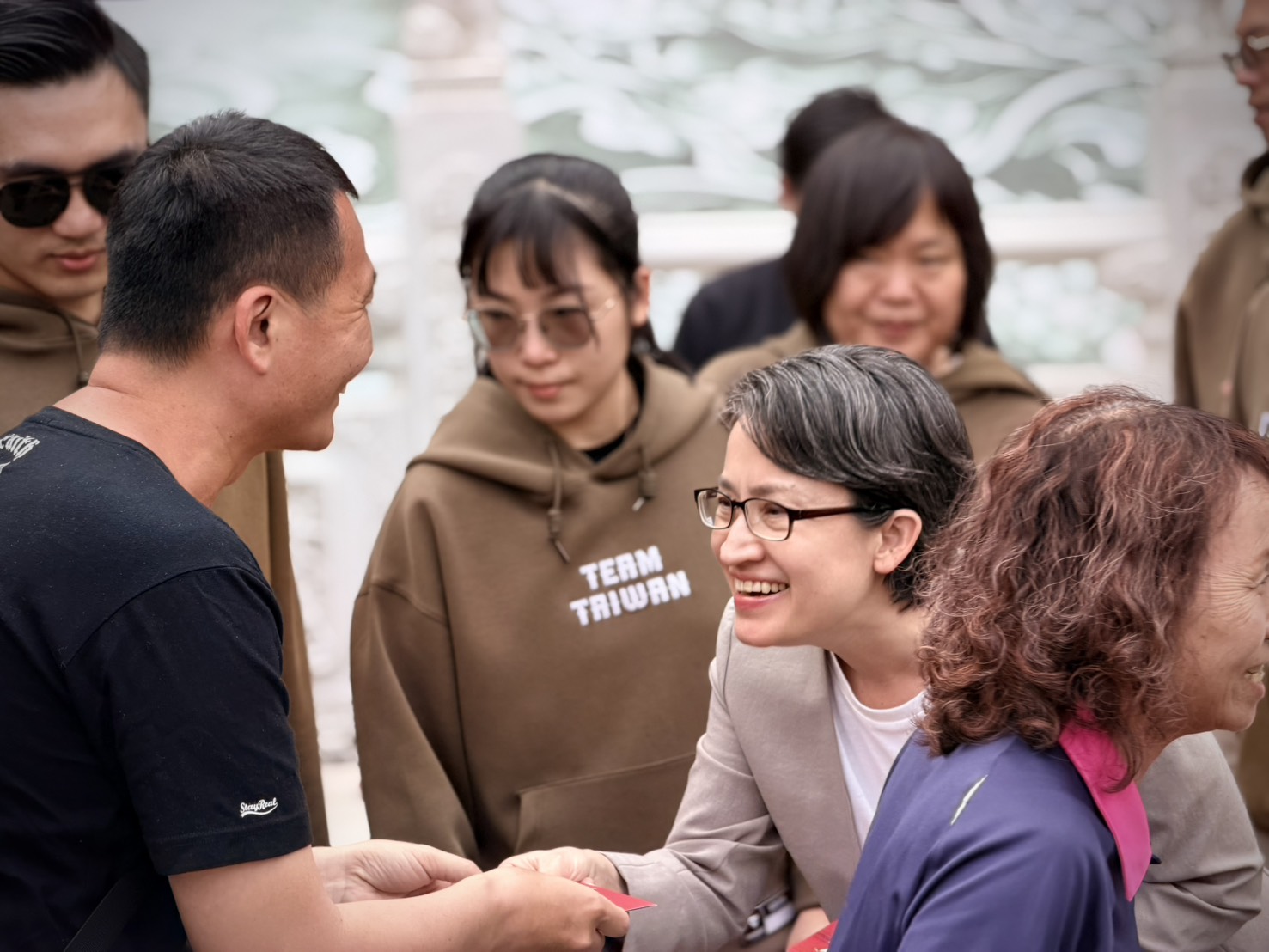 副總統向在場鄉親拜年問候,並表示,感謝民眾在寒冷天氣中仍耐心等候與支持,期盼新的一年能如同氣候逐漸回暖般,更加溫暖與興旺,讓國家國運昌隆、人民團結一致,並祝福大家新年快樂、平安順心。