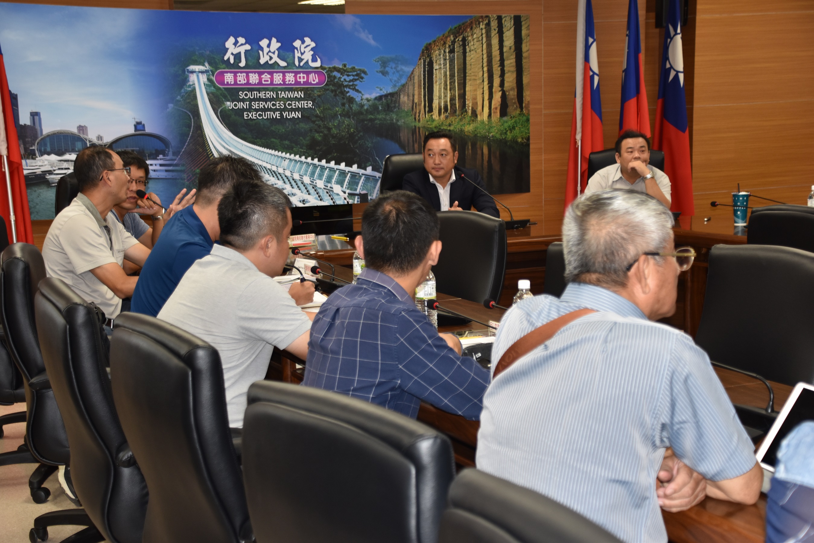 由於新衙路路段特殊,一邊隸屬高雄市政府所轄工業用地,一邊隸屬經濟部工業局所臨海工業區,涉及中央及地方政府協調事項與權責,因此接獲臨海工業區廠聯會陳情後,行政院南部聯合服務中心執行長陳政聞於今(3)日邀集相關單位來到中心召開研議會議,希望能有好的建議能改善新衙路淹水問題。